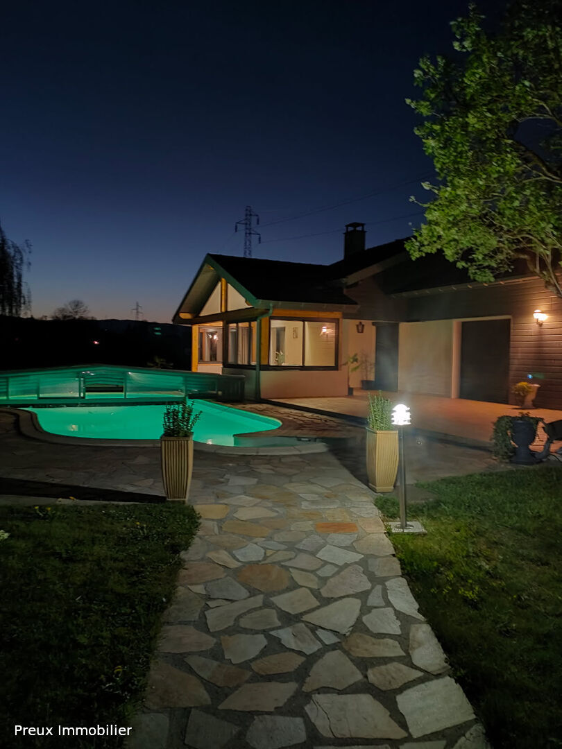 EN EXCLUSIVITE sur la commune d'Amancy, Découvrez cette magnifique maison de 125 m2 implantée sur un terrain arboré et clôturé de 2720 m2, sans vis à vis, au calme. Cette belle propriété offre une pièce de vie avec un accès direct sur la terrasse et la piscine. La cuisine équipée se prolonge sur une véranda offrant un espace convivial et baigné de lumière. Côté nuit cette maison dispose de 4 chambres, une salle de bains, une salle d'eau et un wc. Le sous-sol complet a été aménagé et comprend une salle de jeux, une cave, une buanderie et un coin garage. Sandrine DELAJOD (EI) Agent Commercial - Numéro RSAC : - .