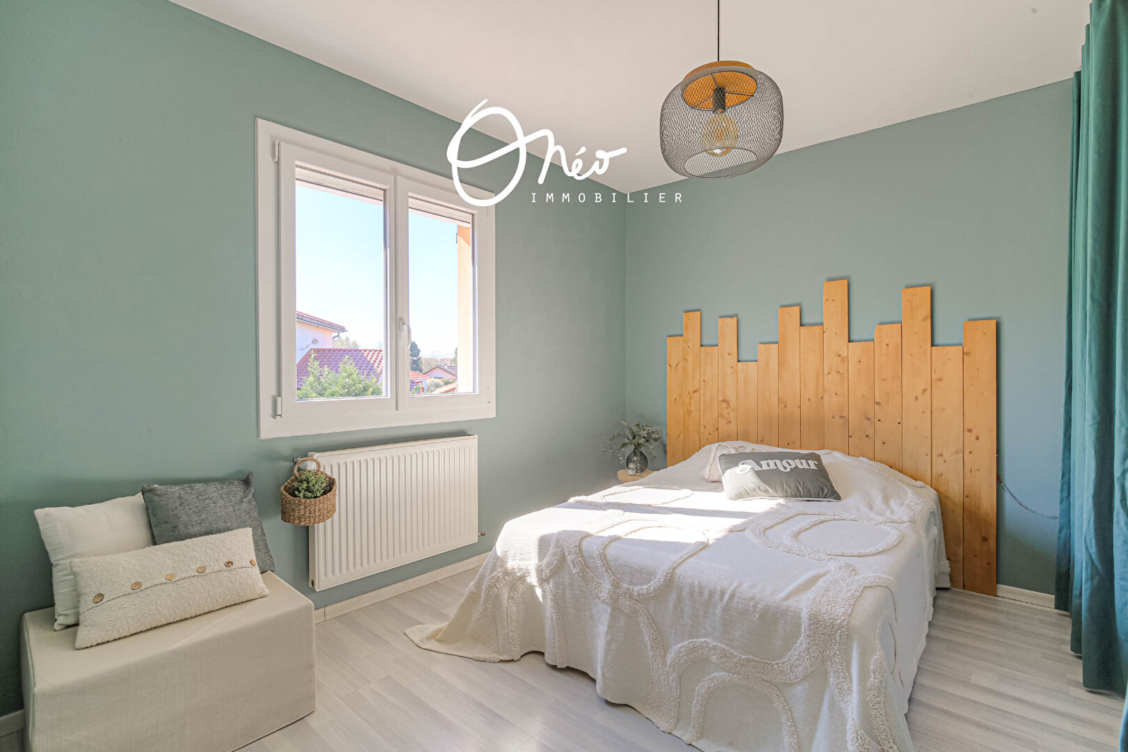 Nouvelle Exclusivité Onéo Immobilier - A quelques minutes du centre du charmant village de Saint-Pierre-de-Chandieu, venez découvrir "Esmée", une maison familiale chaleureuse, prête à vous accueillir. Située au calme, dans un lotissement, cette maison d'environ 98 m² complétée par une véranda lumineuse de 20 m², est implantée sur une agréable parcelle plane, clôturée et arborée de 472 m². Dès l'entrée, vous serez séduits par ses volumes fonctionnels : une entrée avec placard, une belle pièce de vie conviviale avec séjour / salle à manger et cuisine ouverte, entièrement aménagée et équipée. Cet espace s'ouvre sur une véranda de 20 m², idéale pour profiter de la lumière toute l'année et prolonger vos moments de réception. Le rez-de-chaussée offre également un bureau avec rangements, un WC avec lave-mains, ainsi qu'un espace buanderie / chaufferie. A l'étage, le pallier dessert trois belles chambres (dont deux avec rangements), une salle d'eau avec douche, vasque et sèche-serviette, un WC séparé. Côté confort : Menuiseries en double vitrage (oscillo-battantes avec moustiquaires à l'étage), chauffage au gaz avec plancher chauffant au rez-de-chaussée et radiateurs à l'étage (chaudière à condensation) Côté pratique : Portail et porte de garage motorisés. Cour pavée permettant le stationnement de deux véhicules. Notre avis : "Esmée" est une maison clé en main, idéale pour une famille, dans un environnement paisible à seulement 30 minutes de Lyon. Concernant le lotissement : prévoir une cotisation de 110 euros/an. Prix de vente : 450.000 euros (Honoraires à la charge du vendeur) Prenez contact rapidement avec Emmie : 06.66.12.29.13/ emmie@oneo.fr Emmie LEONCINI (EI) Agent Commercial - Numéro RSAC : 948579867 - LYON.