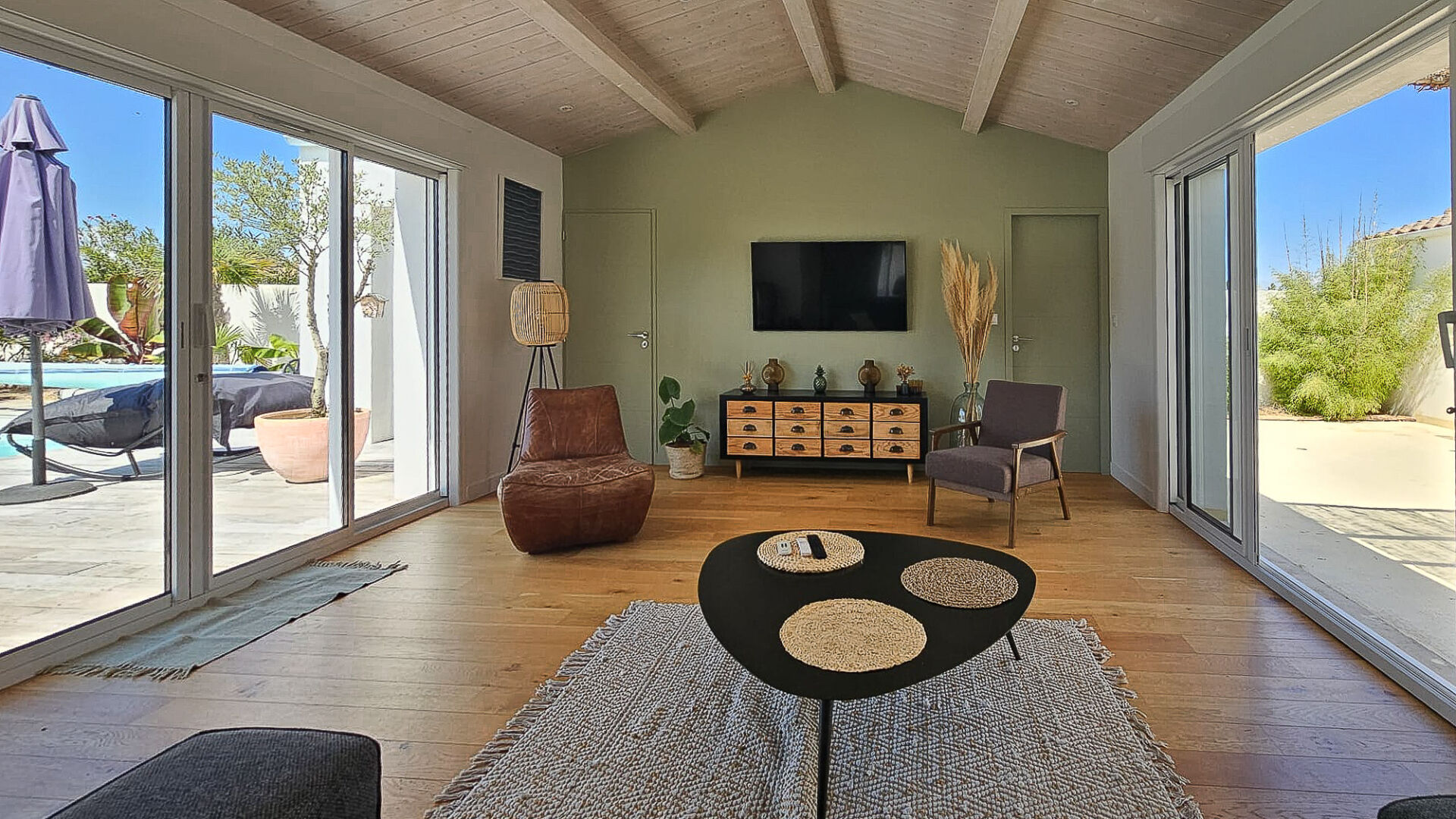 EXCLUSIVITE BLOWSENS SAINTE SOULLE - CENTRE BOURG - aux portes de La Rochelle Situation privilégiée au coeur du village - Environnement calme et sans vis-à-vis - Commerces et écoles accessibles à pied - Environnement calme et sans vis-à-vis Élégante Maison contemporaine lumineuse et conviviale d'environ 200 m2 avec piscine, deux salons et 5 chambres dont 3 suites. Cette élégante propriété familiale dévoile un cadre de vie rare, au calme absolu et sans vis-à-vis, où les espaces intérieurs et extérieurs s'articulent harmonieusement autour de terrasses intimistes et d'une piscine. Pensée dans un esprit contemporain et chaleureux, la maison offre des volumes généreux et une distribution idéale pour la vie de famille comme pour recevoir. Dès l'entrée, la maison révèle une magnifique pièce de vie de près de 60 m², baignée de lumière grâce à de larges ouvertures sur les extérieurs. La cuisine ouverte, entièrement équipée et organisée autour d'un îlot central, s'intègre parfaitement à cet espace convivial. La maison propose 5 chambres, dont trois véritables suites avec salles d'eau privatives, offrant confort et indépendance à chacun. Un art de vivre tourné vers l'extérieur La propriété s'organise autour de plusieurs espaces extérieurs soigneusement aménagés, Un patio abrité permet de profiter d'un espace de détente protégé tandis qu'un espace repas couvert au style atelier, particulièrement chaleureux. Le jardin, facile d'entretien, offre un cadre paisible et préservé de tout vis-à-vis, véritable havre de tranquillité. Debarras - Buanderie Garage indépendant Piscine 4x8m Dossier complet et visite sur demande. N° de mandat : 3156 - Frais d'agence Inclus à la charge Vendeur - Bien hors copropriété. Pour visiter, ou pour toutes informations, contactez votre agence BLOWSENS Immobilier au 05.16.40.50.20. Toutes nos annonces sont disponibles sur notre site internet : www.blowsens.fr Les informations sur les risques auxquels ce bien est exposé sont disponibles sur le site Géorisques : www.georisques.gouv.fr