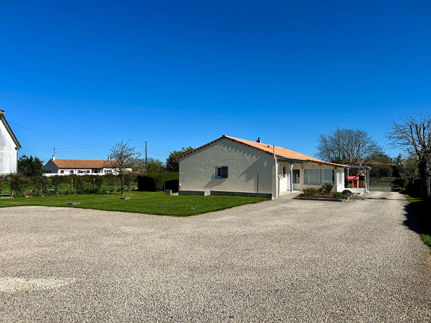 A 5 minutes de La Crèche et à 20 minutes de Niort, pavillon de plain-pied en excellent état d'entretien (nombreux travaux récents) d'une superficie habitable de 123 m² comprenant: séjour-salon de 44 m² avec présence d'un poele à granulés, véranda de 16 m² chauffée, cuisine aménagée et équipée, dégagements, 3 chambres, salle d'eau, wc. Cave. Garage de 93 m². Terrain entièrement clos de 1 732 m². Contacter l'agence ADI de La Crèche au 05 49 05 42 34 ou Ludovic PERON au 06 28 60 94 93 pour obtenir de plus amples renseignements. (4.00 % honoraires TTC à la charge de l'acquéreur.)