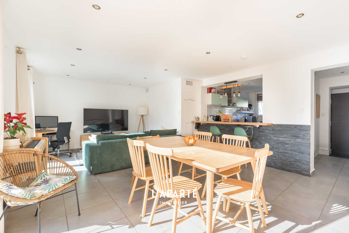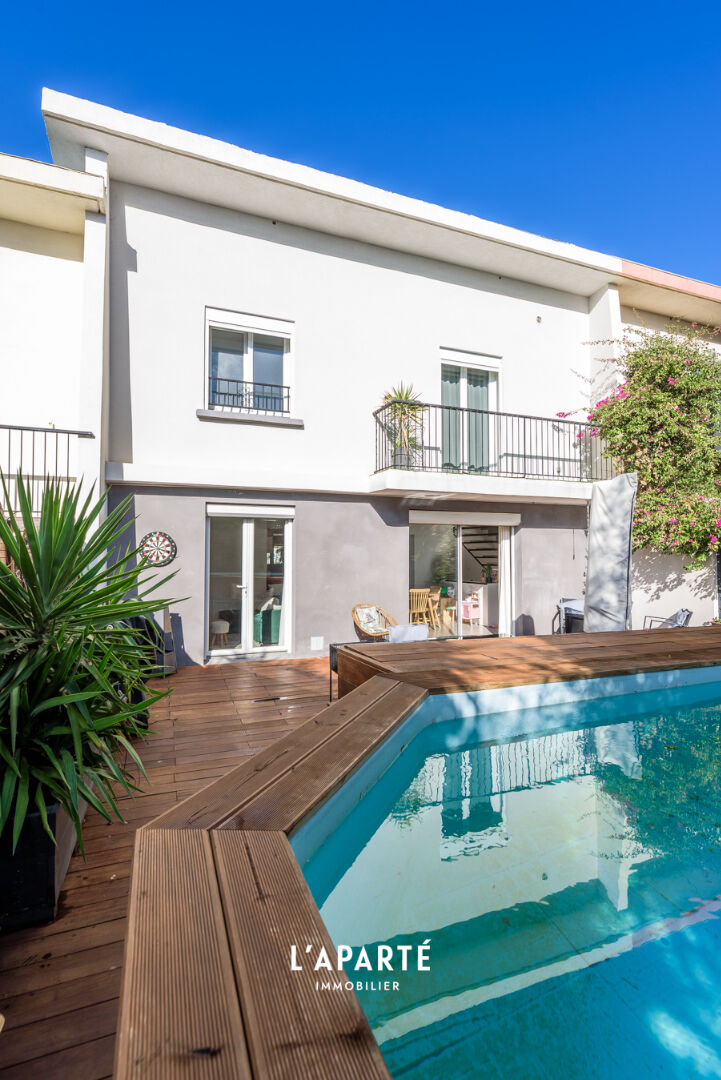 Maison 6 pièces 95 m² carrez, 127 m² au total et complétement rénovée. L'Aparté immobilier vous présente en exclusivité cette maison au CALME ABSOLU .Elle se distingue par ses espaces parfaitement pensés pour offrir un cadre de vie confortable et chaleureux. Au niveau principal une large entrée accueille les visiteurs ainsi que de nombreux rangements. La cuisine ouverte et entièrement équipée, réalisée avec des matériaux de qualité ce qui s'intègre harmonieusement au double séjour lumineux. Cet espace de vie s'ouvre sur une terrasse exposée plein sud, idéale pour profiter du soleil, ainsi qu'un espace piscine . Deux toilettes indépendants, un atout très apprécié au quotidien. Le niveau -1offre un véritable espace complémentaire : Un bureau parfait pour le télétravail, ainsi que 25 m² dédiés à la détente pouvant accueillir une salle de jeux, un espace sport, un home cinéma ou tout autre projet selon vos envies. Au premier étage, un large couloir équipé de nombreux dressings , dessert la partie nuit. On y trouve trois chambres confortables, ainsi qu'une quatrième chambre plus spacieuse, dotée de sa terrasse privative. Une grande salle de bains, entièrement rénovée avec goût et de beaux matériaux, ainsi qu'un espace buanderie complète cet étage. Clés en main! Un box vient enfin compléter ce bien. Au calme absolu. Pour plus de renseignents n'hésitez pas à nous contacter. Copropriété de 6 lots. Charges annuelles : 30 euros.