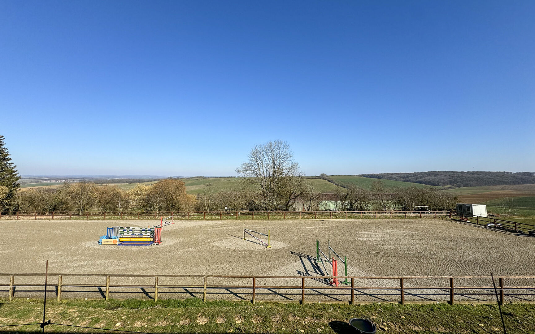 Domaine d'exception avec écuries et maison moderne à Juville Passionnés de chevaux et d'équitation, experts en la matière ou en cours de reconversion professionnelle, découvrez une opportunité rare de développer votre activité dans un cadre exceptionnel. Au coeur de la côte de Delme, en Moselle, l'écurie du Soret attend ses futurs propriétaires ! Un colossal domaine, où tout est déjà prévu pour l'accueil des équidés et des nouveaux hôtes des lieux. Une résidence familiale cosy et tendance Au milieu d'une immensité verte et d'installations spécialement prévues pour vos amis les bêtes, découvrez une charmante maison familiale, aménagée pile poil suivant les tendances actuelles et les modes de vie contemporains. Sorti de terre tout récemment, décoré avec goût, le logis s'offre tel un cocon douillet où il suffit de déployer son fourniment pour se sentir chez soi. Que ce soit dans l'agréable pièce de vie, dans les trois chambres lumineuses ou dans la salle de bain spacieuse, une pléthore de rangements confère un aspect pratique à cette résidence moderne et chaleureuse. Un panorama vers l'infini Incontestablement, l'extérieur constitue le point fort du domaine. Accolé à la charmante demeure, un bel espace privatif avec jardin, terrasse et verger promet de doux moments de partage en plein air. Néanmoins, le clou du spectacle reste à venir... Sur un terrain qui semble s'étendre à l'infini, enclos, carrières, manèges et boxes sont présents pour élever, garder et soigner les équidés. Afin d'assurer toutes ces missions dans de parfaites conditions, des accès sont prévus pour les grands véhicules, des annexes sont aménagées pour les soins, les pansages, la maréchalerie, la sellerie et le foin. Les propriétaires de chevaux seront, eux, comblés par toutes les largesses qui leur sont accordées avec, entre autres, l'incontournable club house. Un lieu de vie pour explorer la côte de Delme A Juville, où se trouve ce formidable domaine, l'écurie du Soret compte parmi les lieux emblématiques et réputés. Composée essentiellement de terrains agricoles et de prairies, la petite commune mosellane est un véritable havre de paix. Les amoureux de nature et de grands espaces seront, sans nul doute, enchantés par les extraordinaires panoramas à contempler, comblés par les formidables balades offertes par la réserve naturelle de la côte de Delme, fascinés par la vie qui s'épanouit ici sous toutes ses formes. Si le centre équestre prend place au coeur d'un environnement préservé, il n'est toutefois pas complètement isolé. Dans les villes voisines de Delme et Solgne, à moins de dix minutes de voiture, on retrouve une ambiance animée et de multiples commodités. Et lorsque l'envie de prendre un bain de foule devient irrésistible, il suffit de rouler davantage, Metz étant à trente minutes de Juville, et Nancy, à quarante. Avis de l'agence : Que vous soyez déjà impliqué dans une activité équine ou que vous soyez un palefrenier en devenir, ce domaine équestre d'exception en Moselle vous permettra de donner vie à toutes vos ambitions. En parfait état et sans aucun besoin de travaux, l'écurie du Soret comme la demeure des propriétaires sont prêtes à vous accueillir, ainsi que vos chevaux et ceux d'une clientèle fidèle déjà établie. L'immense diversité d'installations ainsi que leur caractère récent garantissent la satisfaction des plus hautes exigences. Sylvie du WELZ (EI) Agent Commercial - Numéro RSAC : 493 231 039 - BESANCON.