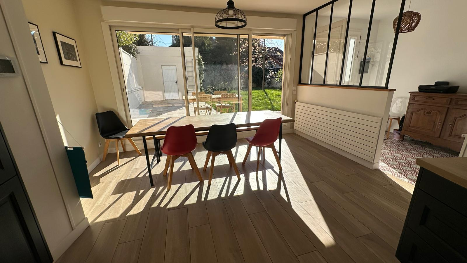 Réf 8096 Le Raincy, au fond d'une allée privative au calme et à proximité des commerces et des écoles, maison de 123 m2 habitables sur un terrain de 407 m2. Elle offre une très bonne performance énergétique et une décoration moderne et soignée. Le rez-de-chaussée comprend une vaste entrée, un salon avec cuisine ouverte et équipée donnant de plain-pied sur la terrasse et le jardin, un séjour avec cheminée et home cinéma, une chambre, une salle d'eau et des wc séparés. A l'étage, deux chambres dont une avec salle d'eau, ainsi qu'une grande véranda pouvant servir de salle de jeux ou d'espace de travail. Un garage indépendant complète l'ensemble.