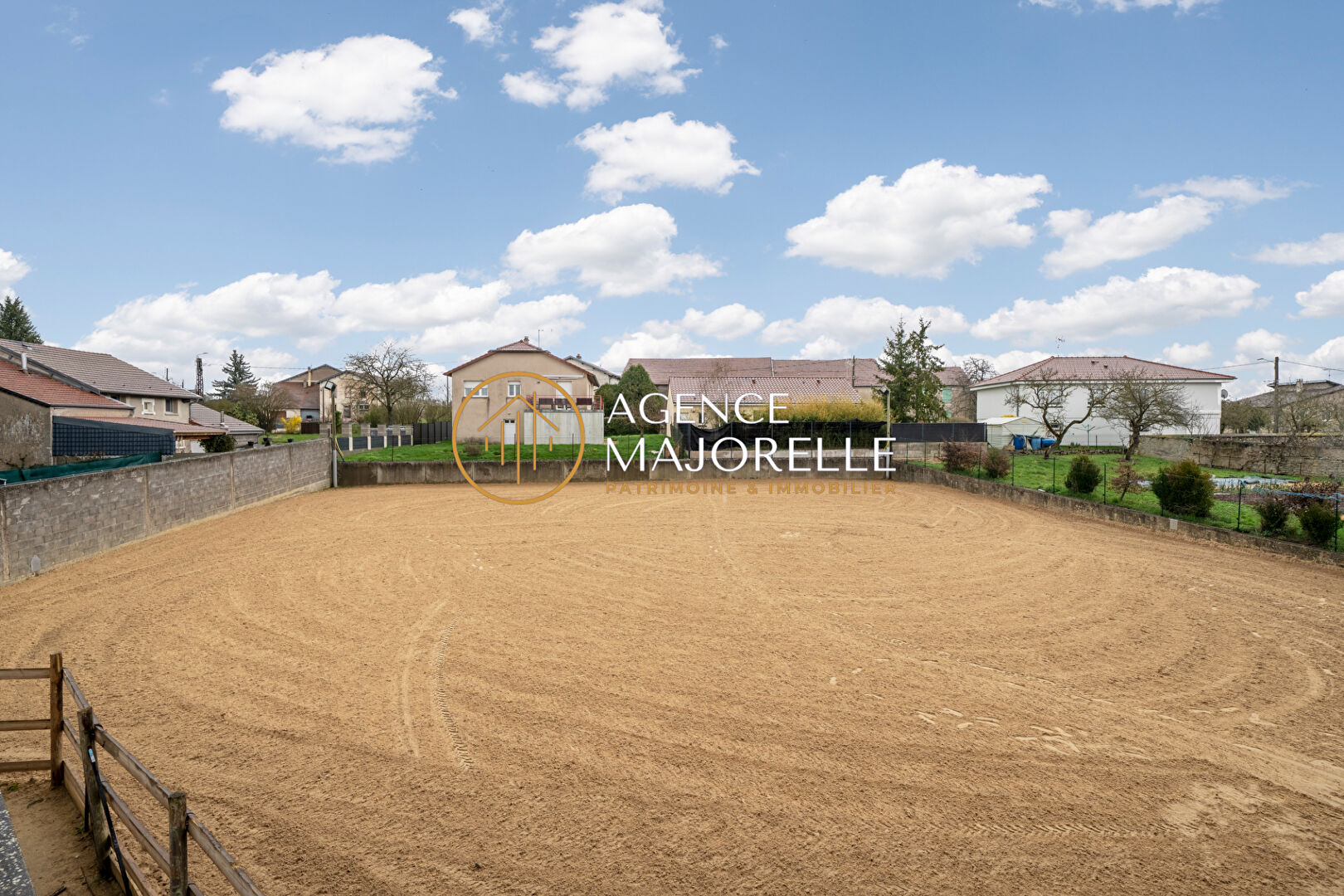 PROPRIÉTÉ ÉQUESTRE D'EXCEPTION située à 10 min de la gare Lorraine TGV et de l'Aéroport Nancy-Metz. Dans un environnement calme et préservé, découvrez cette propriété rare et atypique, idéale pour les passionnés d'équitation en quête d'un lieu de vie alliant confort, nature et fonctionnalité. Édifiée sur un ensemble parfaitement aménagé pour accueillir chevaux et cavaliers, cette propriété unique propose une maison d'habitation entièrement réhabilitée en 2001, développant environ 200 m² habitables. Dès l'entrée, vous serez séduit par les volumes et la luminosité : Une vaste entrée distribue un espace de vie exceptionnel de près de 80 m², sublimé par une cheminée en pierre de taille et prolongé par un balcon offrant une vue dégagée sur la propriété. La cuisine, entièrement équipée, s'intègre harmonieusement à cet espace convivial. L'espace nuit se compose de trois chambres spacieuses, dressing indépendant, ainsi qu'une grande salle de bains avec baignoire et douche. Côté confort, la maison bénéficie d'équipements modernes : poêle à granulés et pompe à chaleur air/air assurant une performance énergétique optimale, la toiture est récente, aucun travaux à prévoir. A l'extérieur, vous profiterez d'une terrasse intimiste, sans vis-à-vis, avec piscine couverte, véritable cocon de détente. Les combles restent aménageables, offrant un potentiel supplémentaire selon vos projets. L'atout majeur de cette propriété : son infrastructure équestre complète et directement accessible depuis l'habitation. Écuries, boxes, carrière et parcs pour chevaux sur presque 1 hectare composent un ensemble fonctionnel, parfaitement adapté à une activité équestre privée et familiale. Une seconde maison à rénover à l'entrée de la propriété peut vous offrir 100m2 supplémentaires pour héberger vos amis ou créer deux chambres d'hôtes. Une opportunité rare sur le secteur, alliant cadre de vie privilégié et installations équestres de qualité ? un bien d'exception pour les amoureux de chevaux et de grands espaces. A découvrir sans tarder. Photos supplémentaires disponible après entretien téléphonique uniquement. Les informations sur les risques auxquels ce bien est exposé sont disponibles sur le site Géorisques : www.georisques.gouv.fr Arnaud MARQUET (EI) Agent Commercial - Numéro RSAC : 904808565 - Nancy.