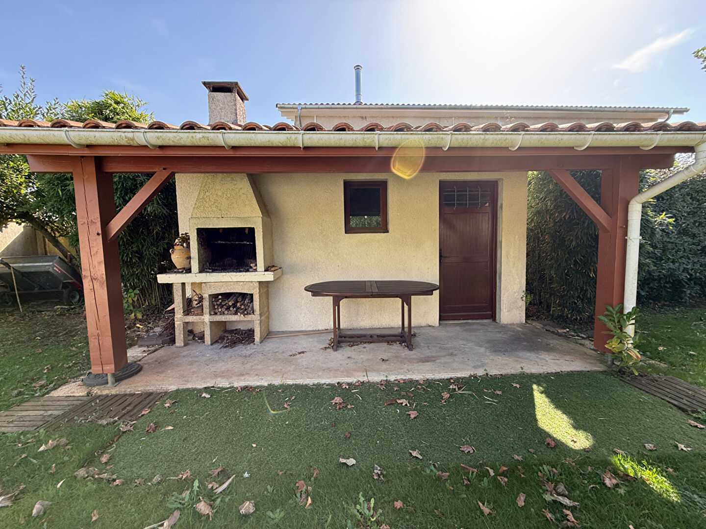 Gujan-Mestras - Quartier Meyran Marin Immobilier vous invite à découvrir cette charmante landaise, construite à la fin des années 70, nichée au calme sur une parcelle d'environ 1 400 m². Dès l'entrée, vous apprécierez un salon chaleureux avec cheminée, une cuisine équipée et une véranda lumineuse de 9 m². Trois chambres, une salle de bains, un cellier complètent ce premier niveau. L'étage propose deux chambres supplémentaires, dont une suite avec salle d'eau et WC privatifs. A l'extérieur, tout est réuni pour profiter : piscine 8 x 4, jardin sans vis-à-vis parfaitement entretenu, chaix de 11 m² et un garage de 14 m² . Un bien idéal pour une famille. Une visite, contactez Marin Immobilier ! (2.59 % honoraires TTC à la charge de l'acquéreur.) Julie MARIN (EI) Agent Commercial - Numéro RSAC : 477626733 - Bordeaux.