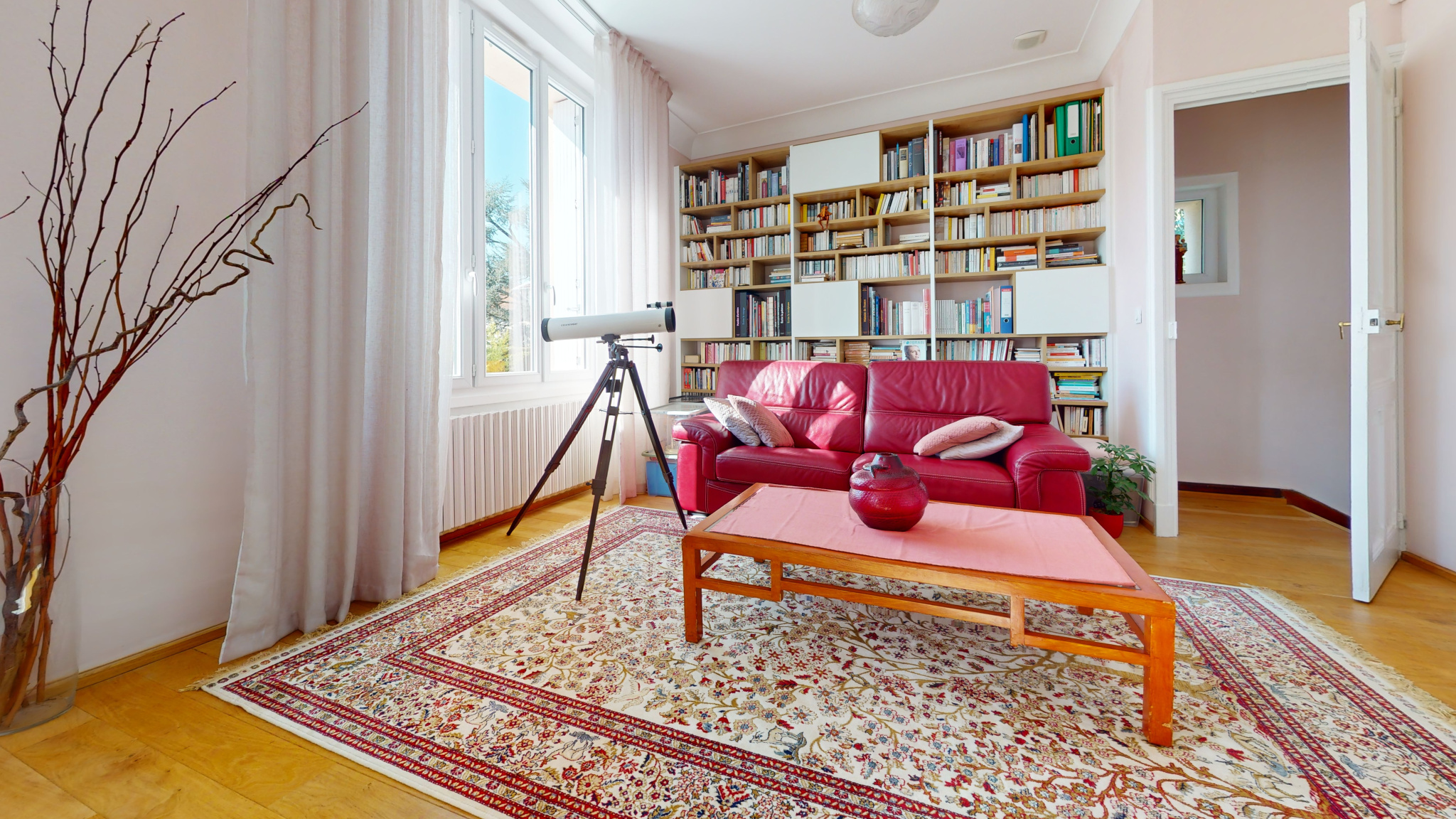 À l'étage, un grand espace actuellement aménagé en bibliothèque offre de nombreuses possibilités d'aménagement, ainsi que trois chambres et une seconde salle de bain.
