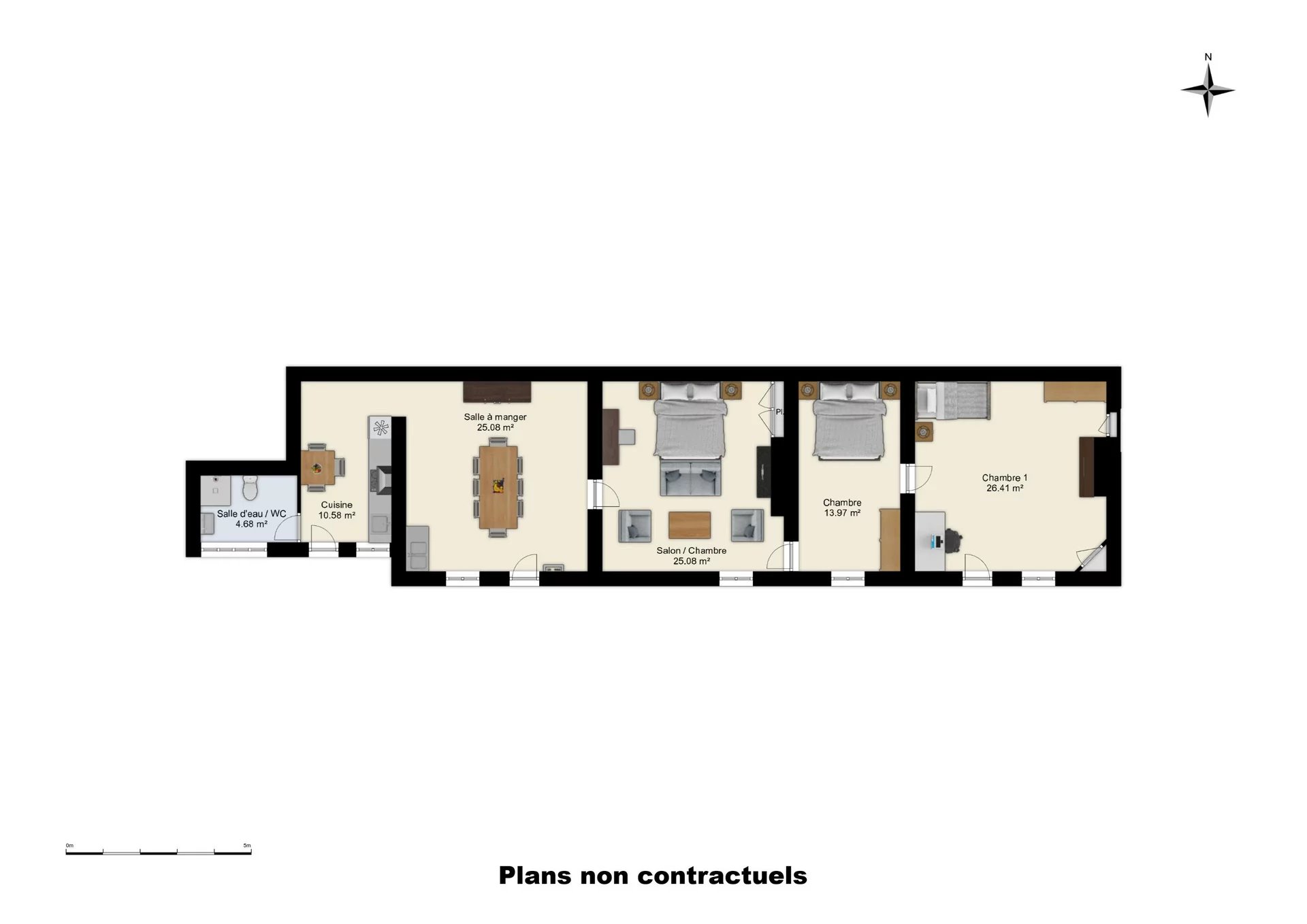 La maison principale comprend une salle d'eau , une cuisine , un séjour salle à manger , 3 chambres , un grand grenier aménageable ( surface habitable 105 m²)
