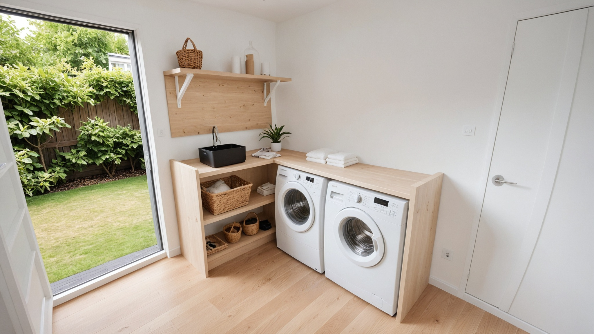 Une très grande buanderie de 9m2 la cuisine et donne directement dans le garage pour 2 voitires.