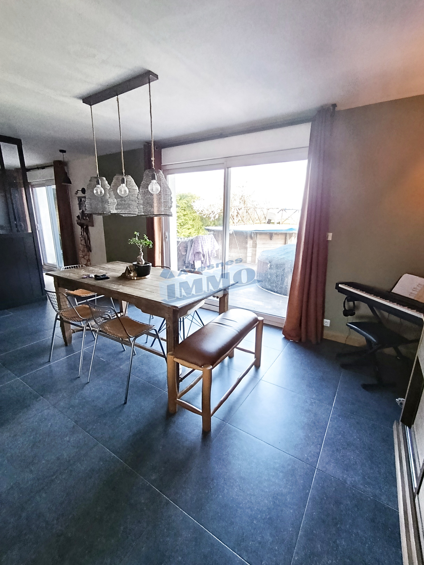 Maison contemporaine d'environ 126 m2, offrant des prestations modernes et un cadre de vie agréable. Au rez-de-chaussée, vous découvrirez une entrée accueillante, un vaste salon-séjour lumineux équipé d'un poêle à granulés, une cuisine équipée, des WC indépendants, ainsi qu'un cellier/buanderie et une dépendance pratique.