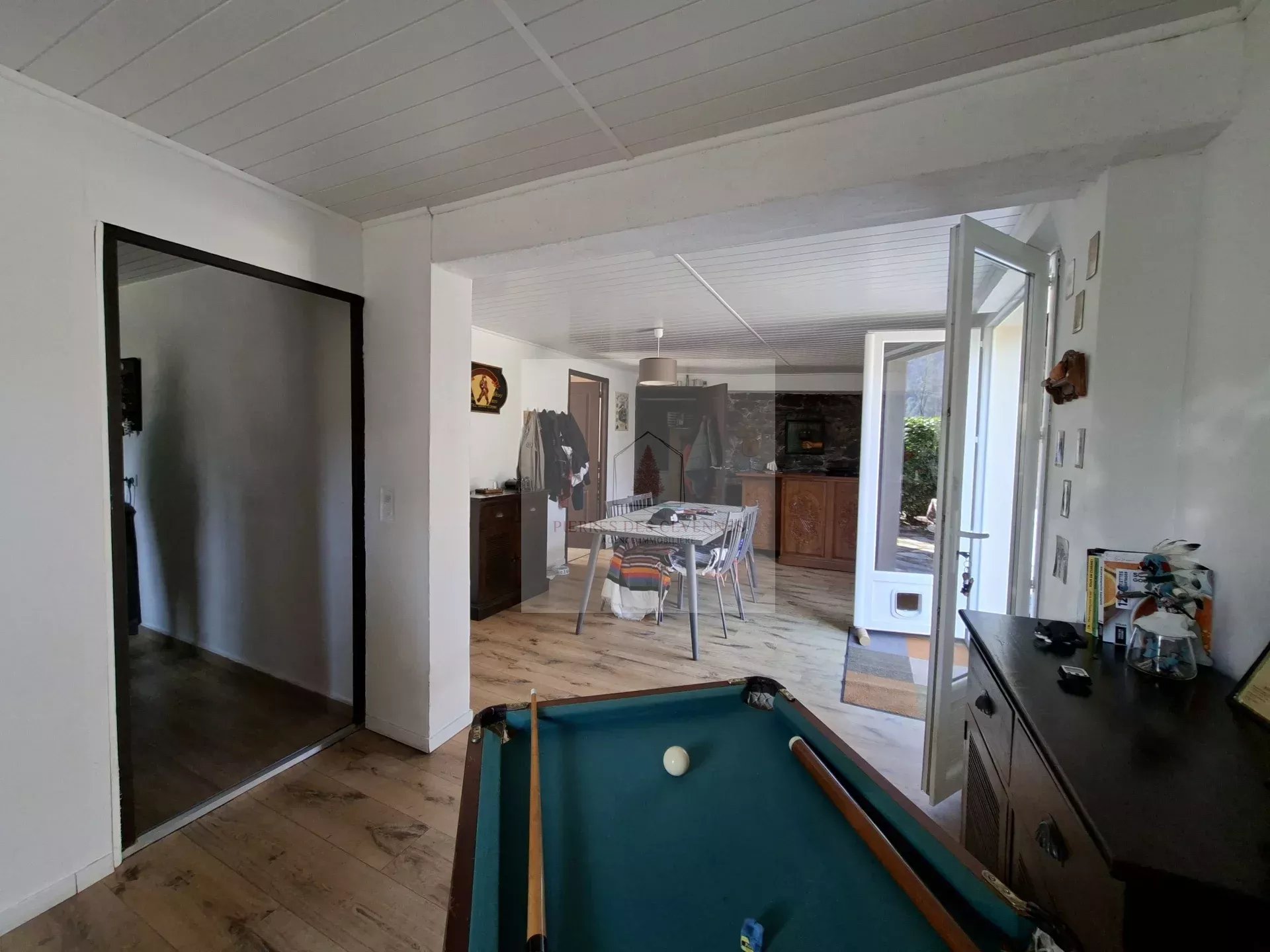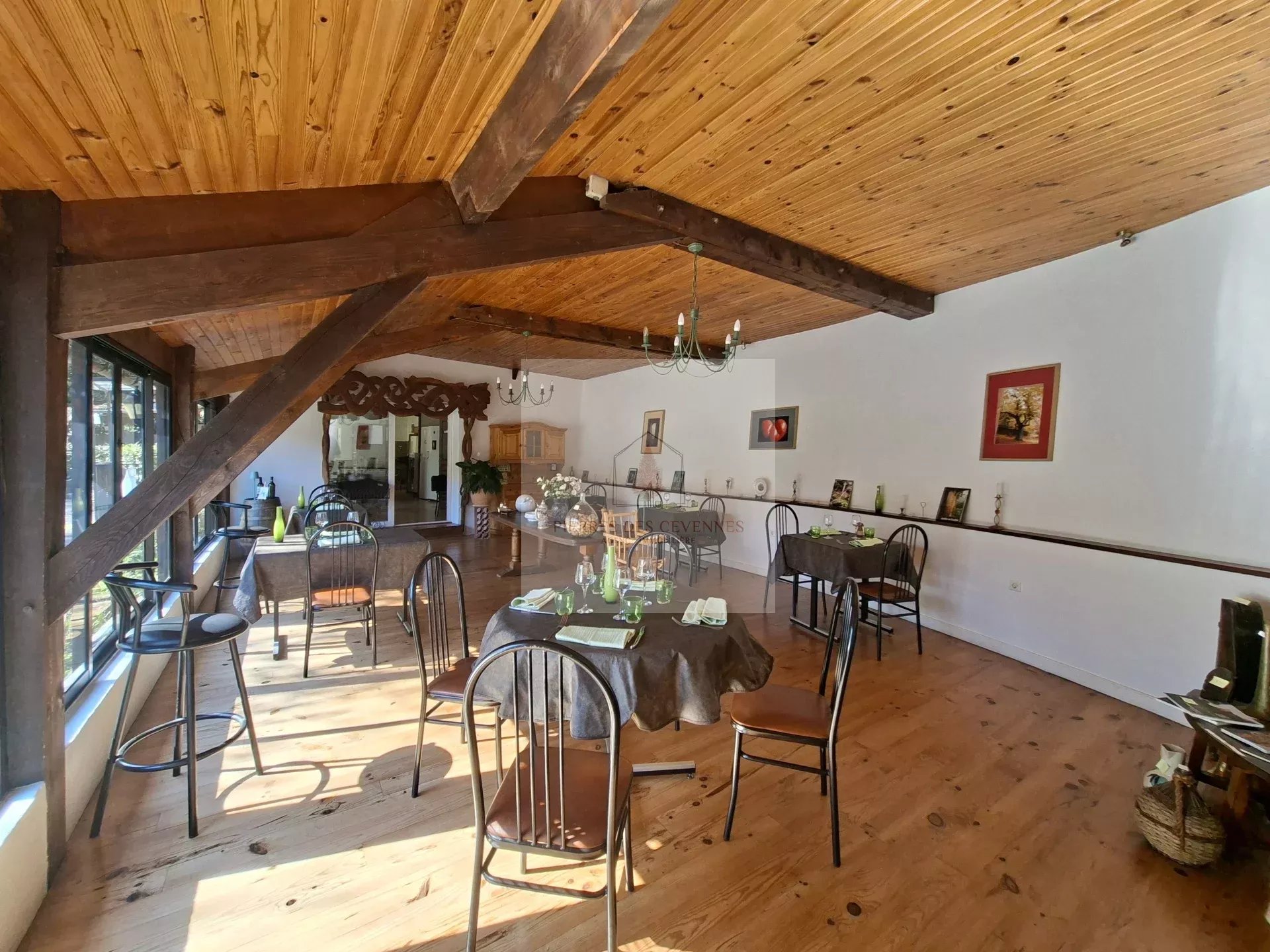 Vous souhaitez vous installer en Cévennes, créer ou délocaliser votre activité professionnelle, ce bien est fait pour vous. Sur un terrain de 1335 m² clôt est édifiée une grande maison de 292m² en excellent état. En rez de chaussée se trouve le commerce actuellement utilisé en restaurant (113 m² avec terrasse et parking public). La maison familiale occupe les 2 niveaux supérieurs. De plain-pied avec accès indépendant, la pièce de vie, bureau, chambre, salle de bains salle de jeux et garage, cour intérieure, et terrain, au dessus 4 chambres, salle d'eau et toilettes. Idéalement situé avec du passage grâce à la route et la voie verte, le stationnement public et un atout important. A 3.5 kms du collet de deze, village tous commerces, école, collège, médecins... N'hésitez pas à me contacter pour tous renseignements et planifier une visite.
