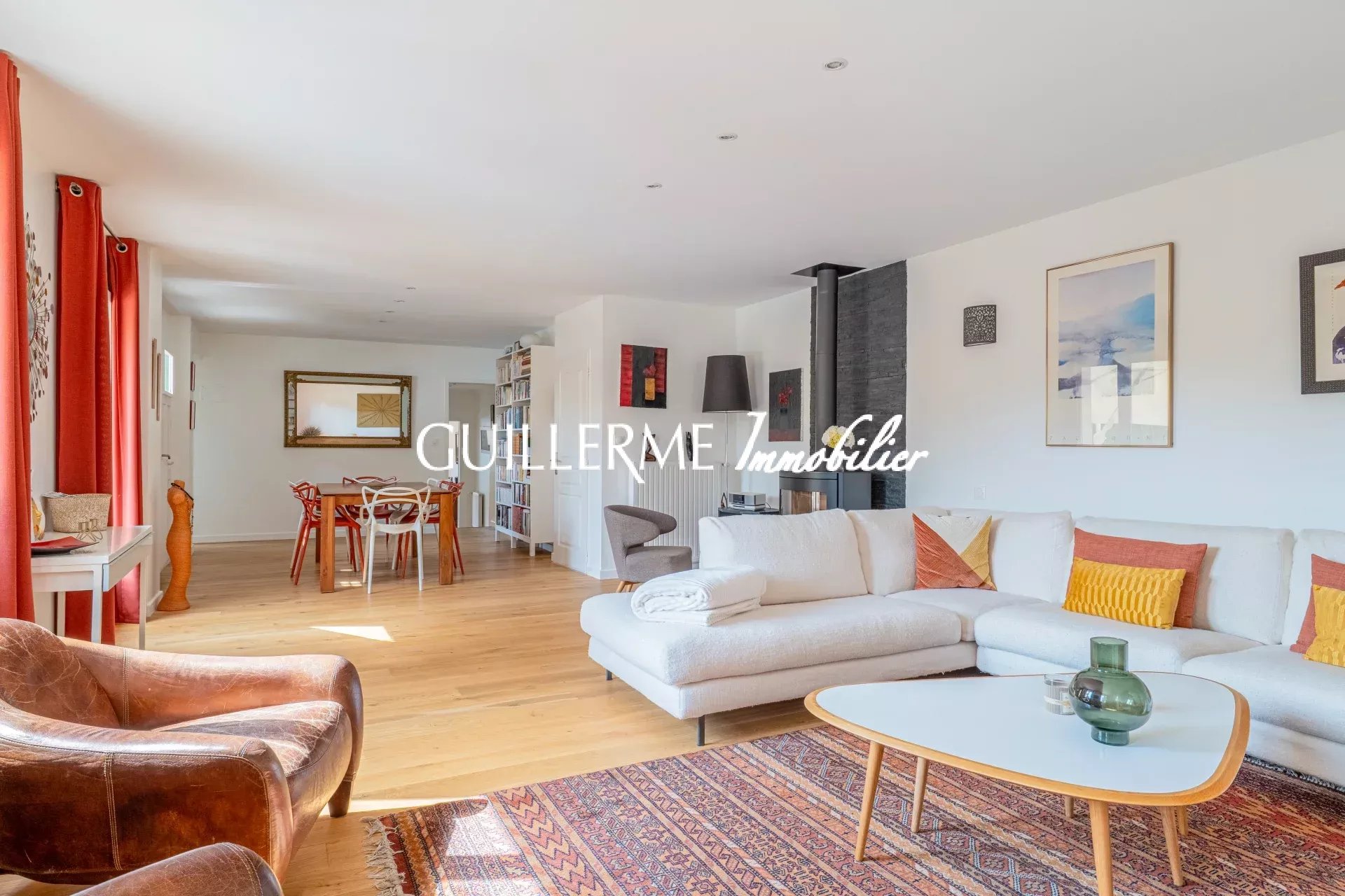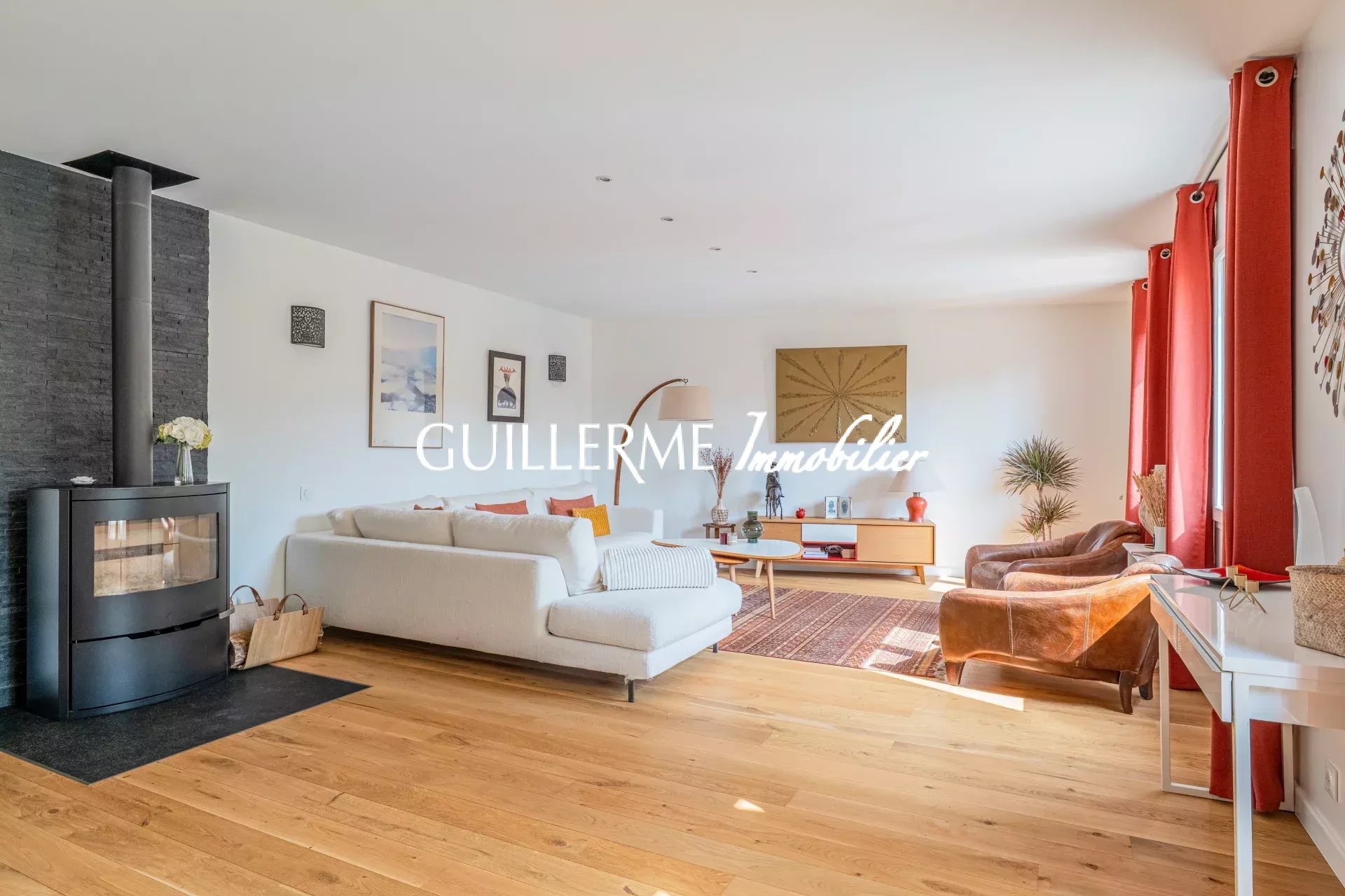- 1 séjour chaleureux de 47 m²avec parquet, poêle à bois et accès direct à la terrasse côté jardin
