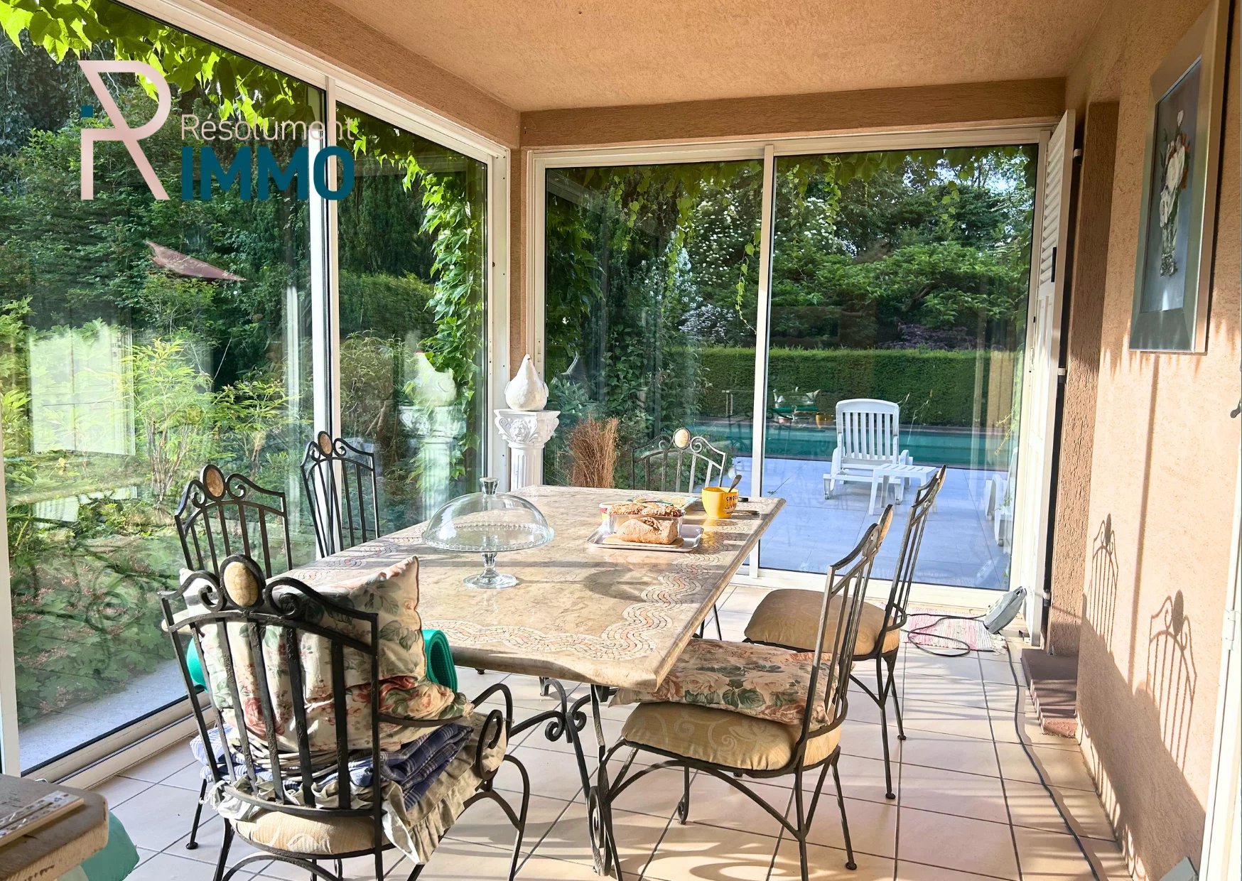 - une élégante véranda exposée Est, prolongeant agréablement la cuisine.