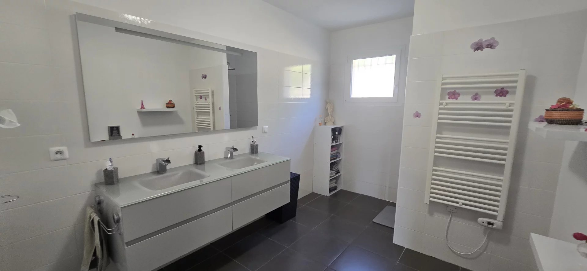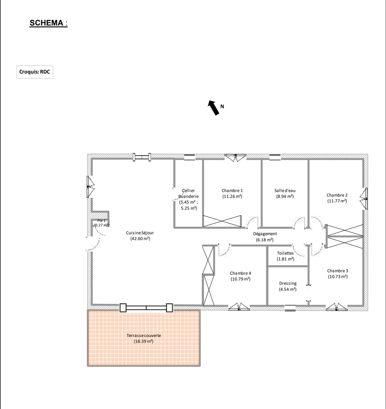 Espace de vie spacieux de 42 m² ouvrant sur une cuisine aménagée et équipée et un cellier-buanderie. Partie nuit composée de 4 chambres, salle d'eau et w.c indépendant. Garage spacieux en sous-sol.