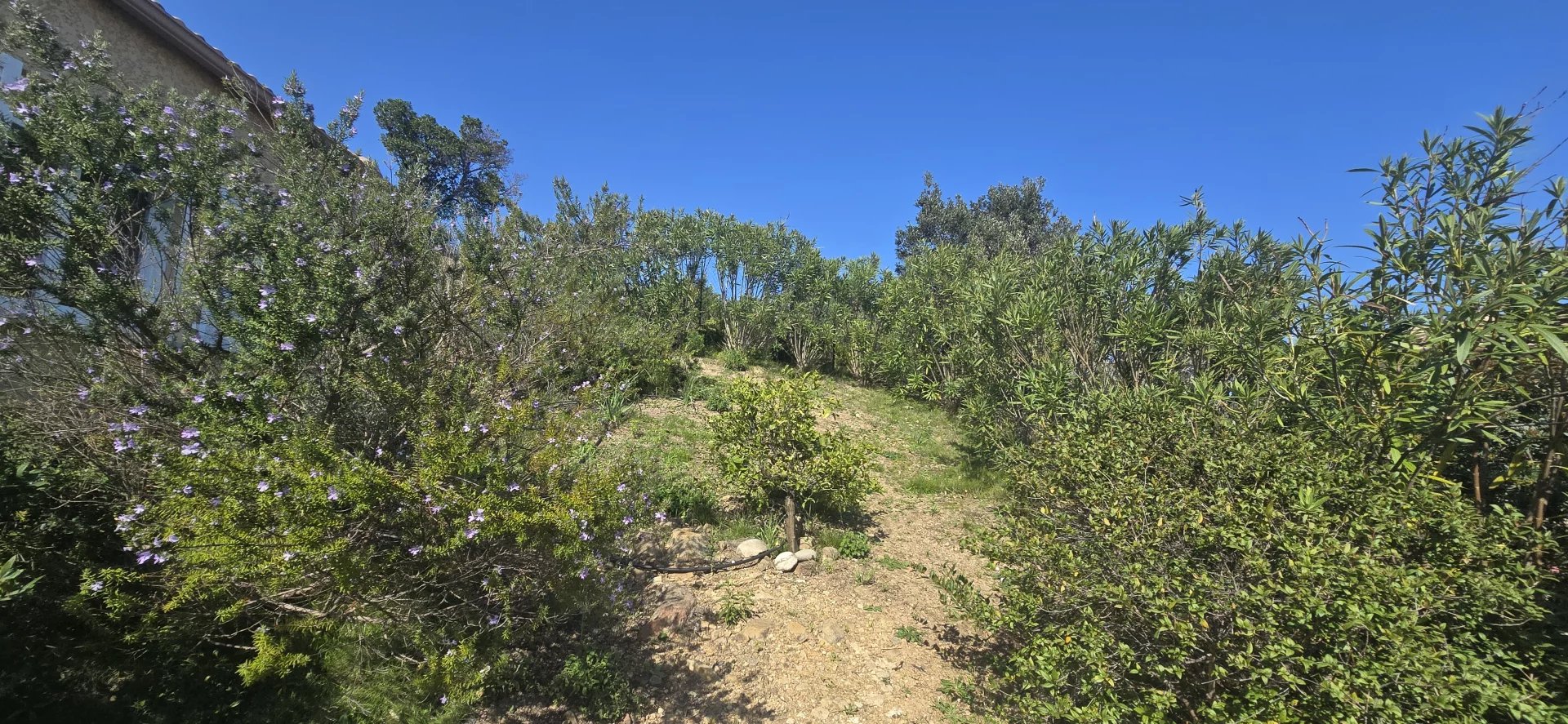 Jardin arboré de plantes et arbustes qui ne demandent pas beaucoup d'entretien.