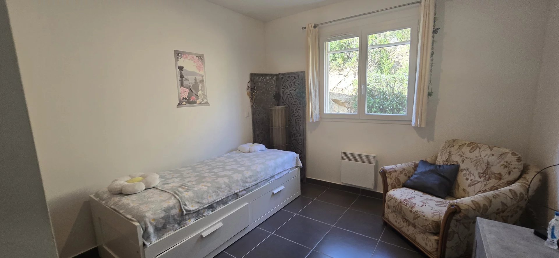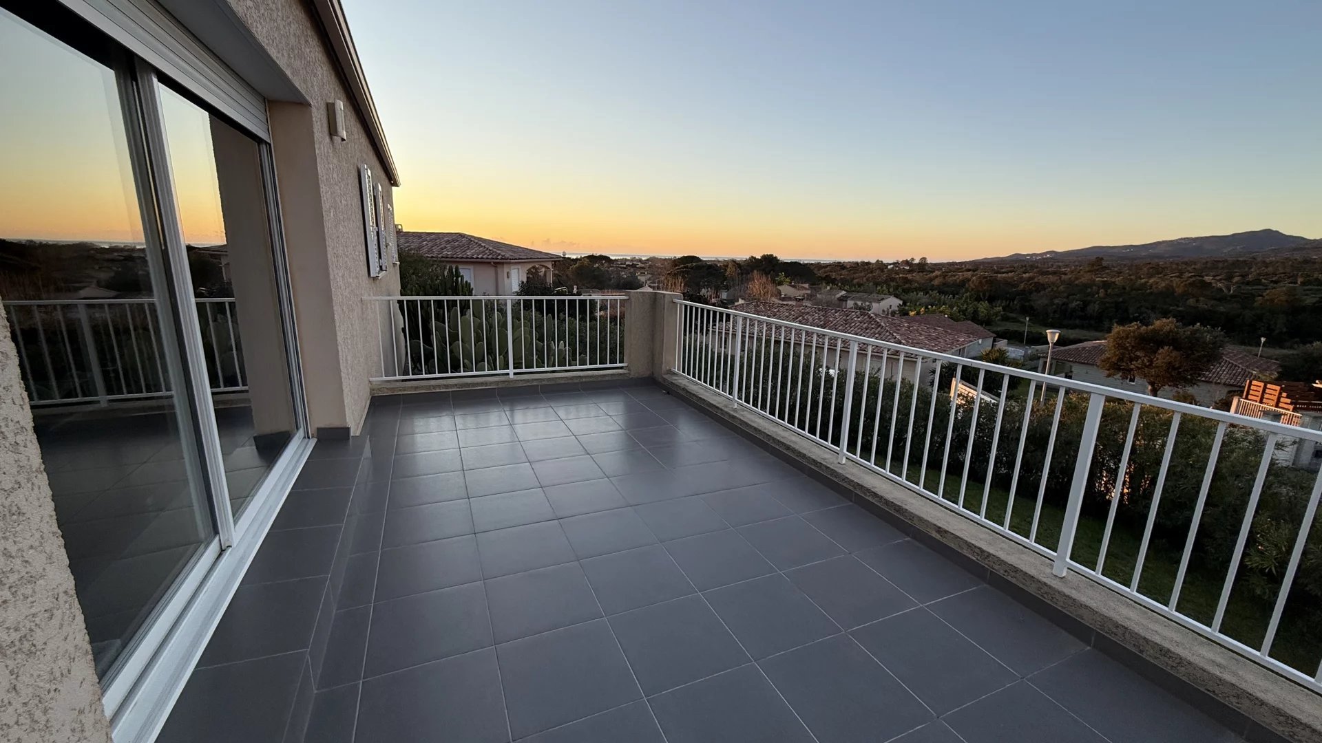 La terrasse, exposée plutôt Nord-Est et Sud-Est, vous offre une vue mer oblique et une très belle vue montagne.