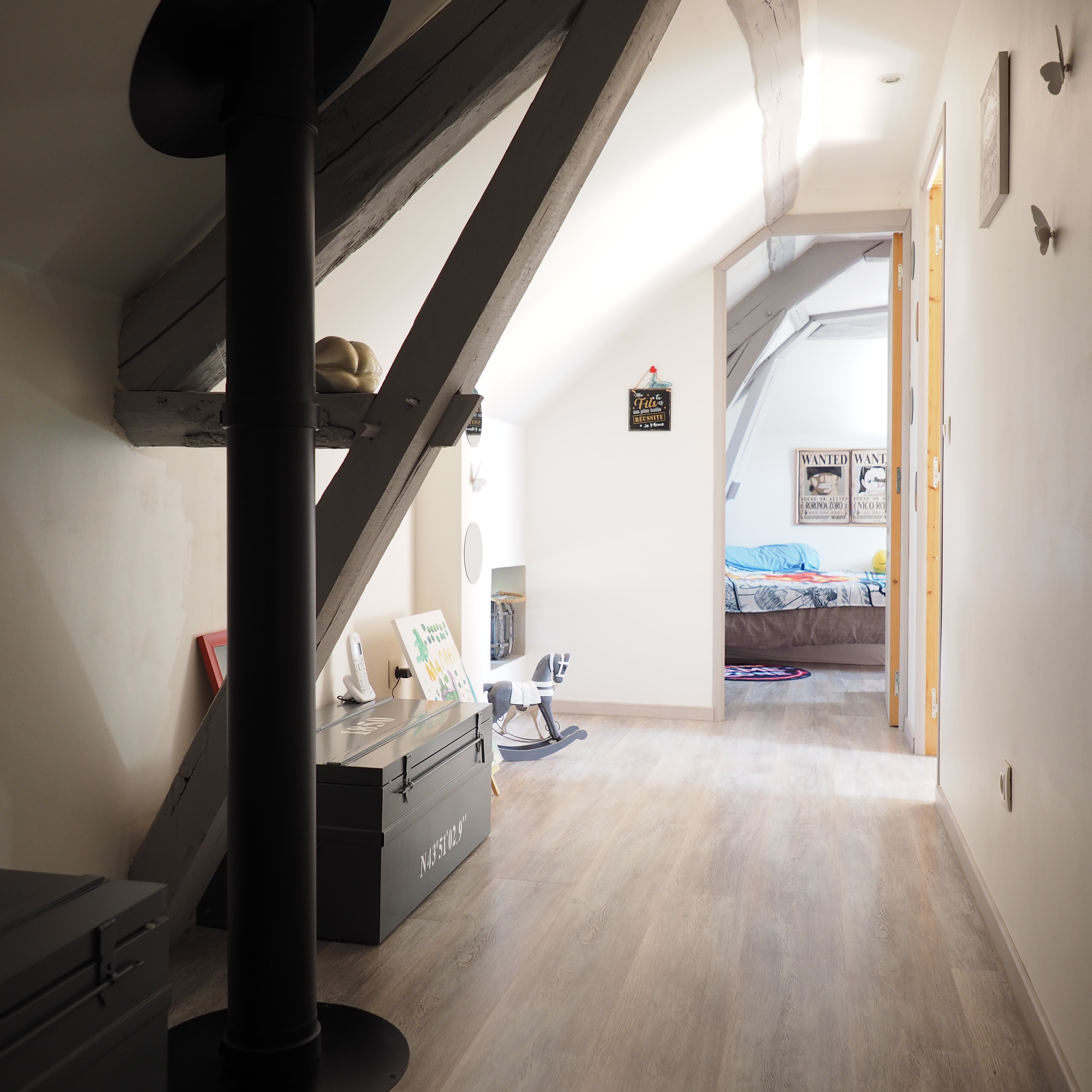 Dès l’entrée, la maison séduit par ses beaux volumes, ses poutres apparentes et son atmosphère chaleureuse. La rénovation soignée permet aujourd’hui de profiter d’un bien clé en main, sans travaux importants.