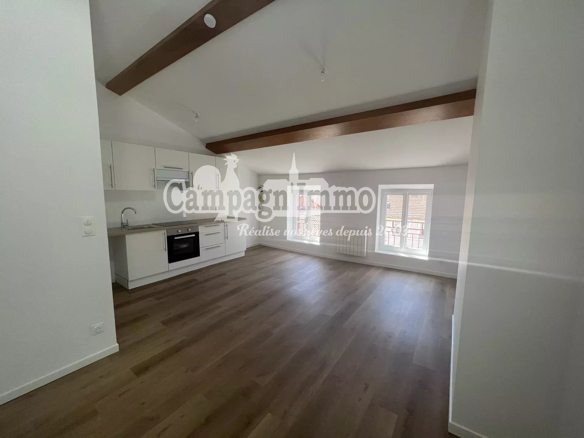 Campagn'Immo vous propose cet appartement fraichement rénové au 5ème et dernier étage d'un immeuble en plein centre de Tarare. D'une surface de 45 m², il se compose d'une grand pièce à vivre avec cuisine aménagée ouverte sur le séjour, d'une chambre avec placard mural et une salle de douche. Loyer: 420.00€ Charges: 10.00€ Dépôt de garantie: 420.00€ Honoraires à la charge du locataire: 25.36€ dont 85.12€ d'honoraires d'état des lieux d'entrée. Disponible à compter du 14/04/2026