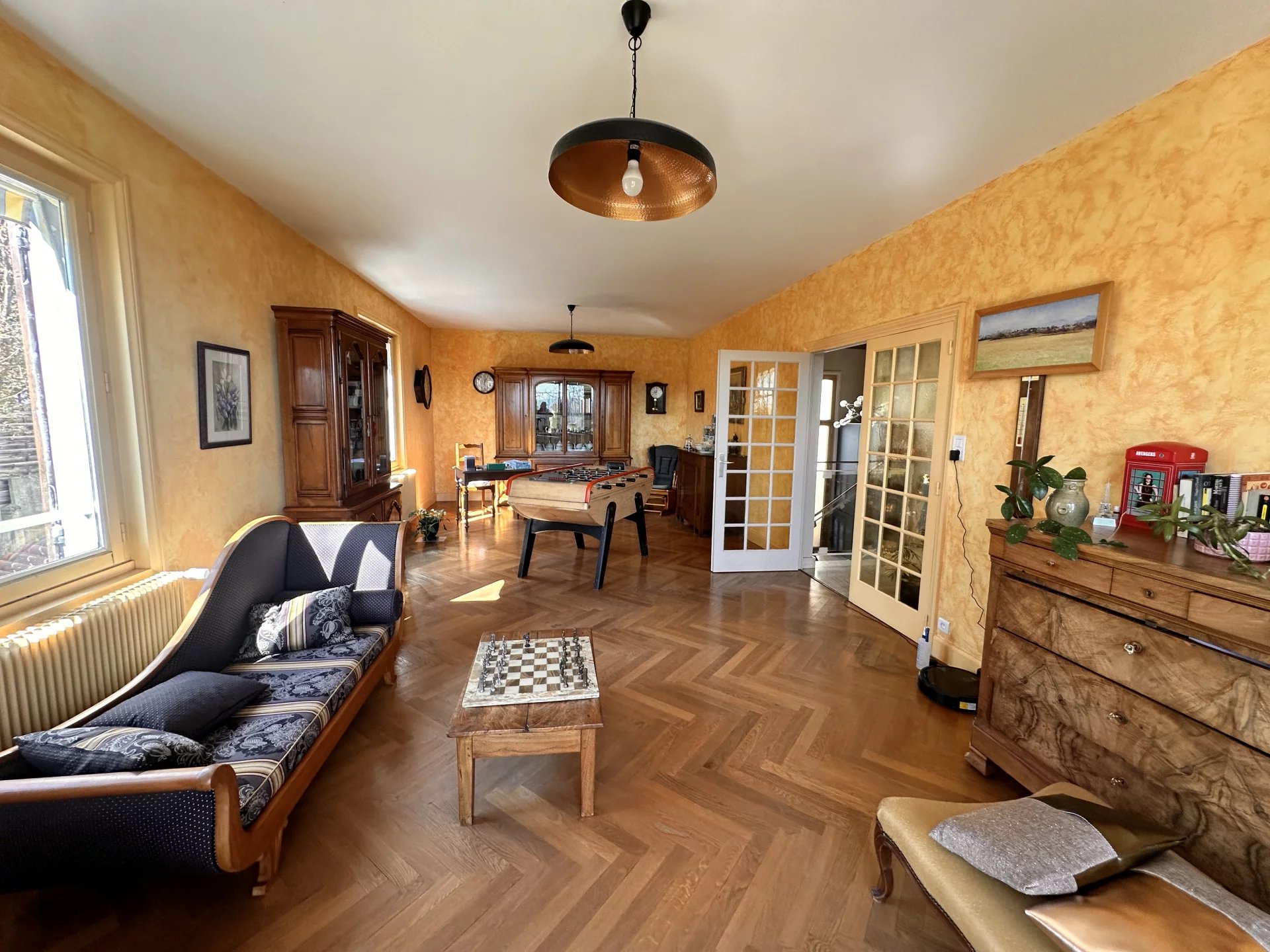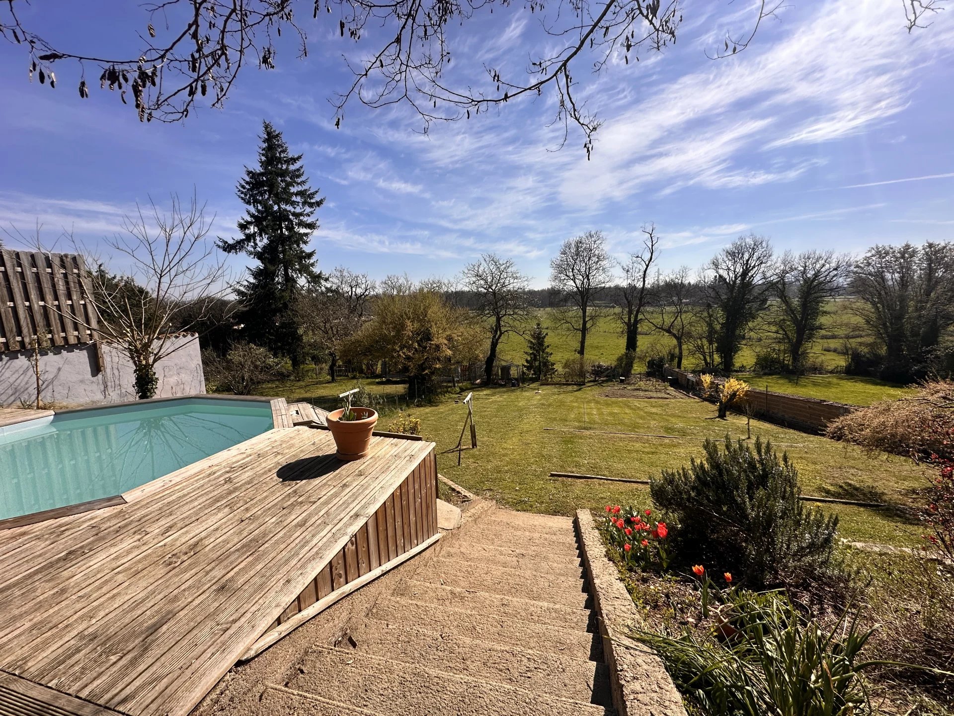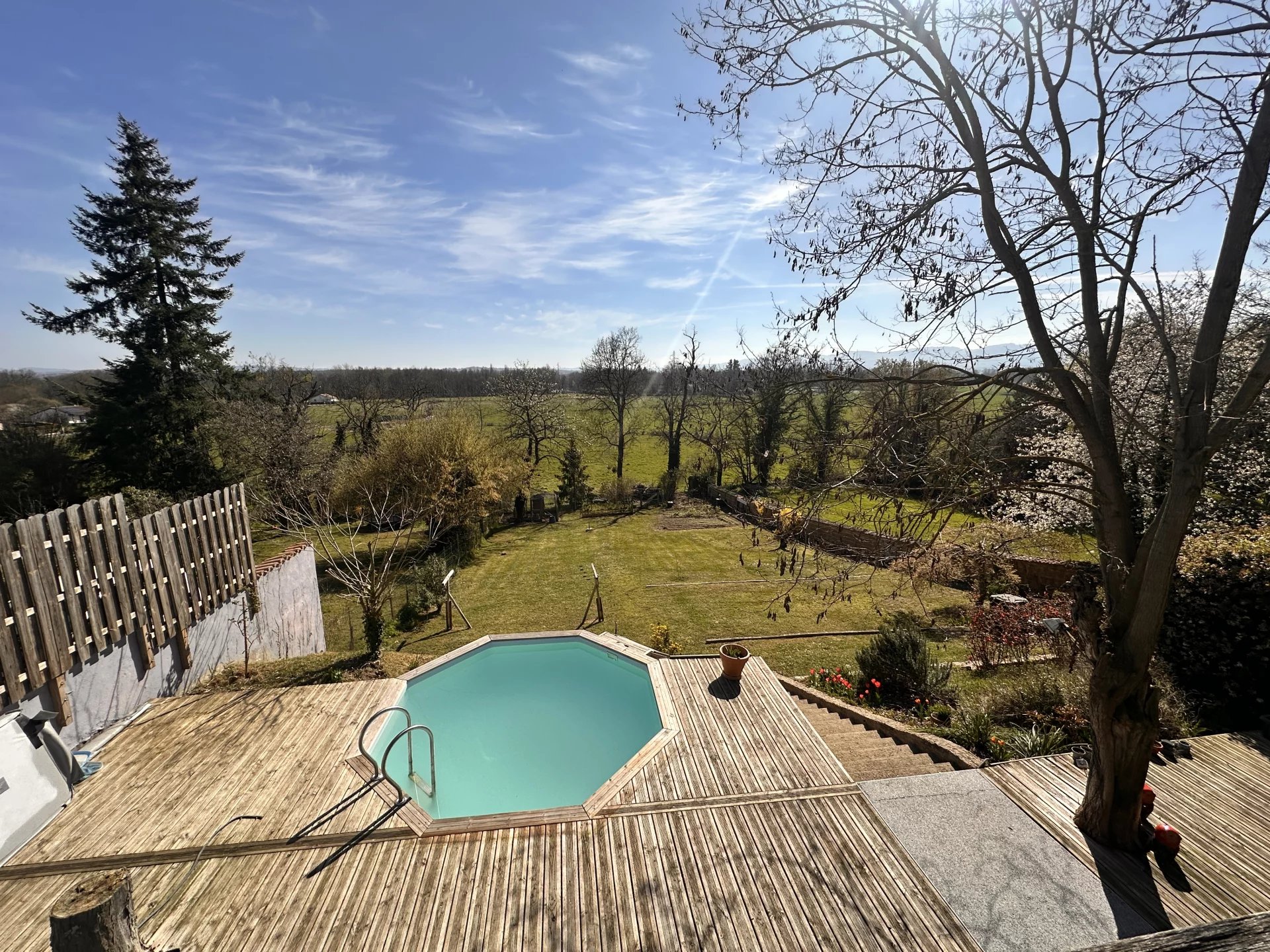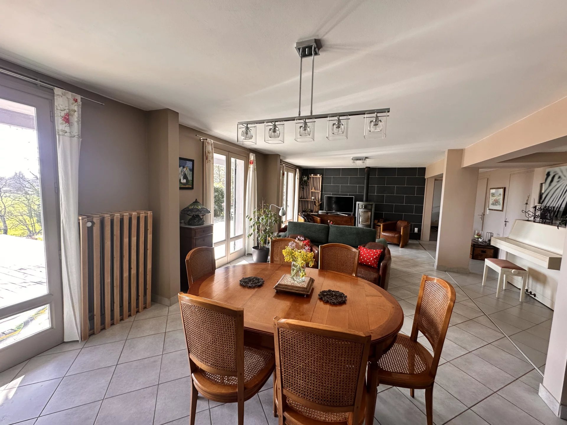 Le Cabinet Loreo vous invite à découvrir cette très belle maison familiale de 300 m² env.sur terrain de plus de 1800 m² exposé plein sud, avec une vue dégagée sur la campagne. Très beaux volumes avec en rez-de-jardin un séjour lumineux de 50 m², ouvrant sur le jardin, avec piscine hors-sol et jacuzzi, une cuisine équipée et aménagée, un grande salle de jeux, buanderie et cave. Au rez-de-chaussée, hall d'entrée lumineux, grande salle à manger, 2 chambres dont une chambre parentale avec dressing, salle de bain avec douche et baignoire, un bureau (possibilité chambre). À l'étage, 3 chambres supplémentaires et salle d'eau, dressing et mezzanine, l'étage idéal pour les enfants. Chauffage individuel au gaz de ville et poêle à bois. Tout à l'égout. DPE D/D Très grande dépendance à rénover avec garage pour projet professionnel, locatif ou familial. Les informations sur les risques auxquels ce bien est exposé sont disponibles sur le site Géorisques : www.georisques.gouv.fr