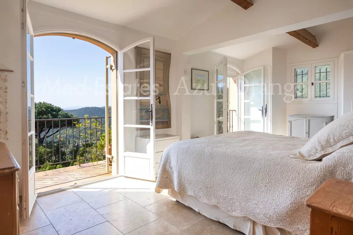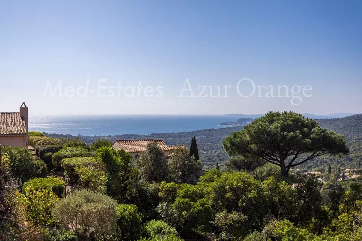 Charmante villa provençale d’environ 157 m², offrant 5 chambres, nichée sur un superbe terrain paysager de ± 2 300 m² avec piscine et double garage. Cette propriété, parfaitement entretenue, séduit par la qualité de ses prestations et ses volumes lumineux et chaleureux. Idéalement située dans un environnement paisible et préservé, elle bénéficie d’un calme absolu tout en restant à proximité immédiate des plages renommées de La Croix-Valmer (Débarquement, Gigaro, Héraclée, Sylvabelle…), du centre du village avec ses commerces et restaurants, ainsi que de nombreux sentiers de randonnée et pistes cyclables. Grâce à son exposition idéale sud-est à ouest, la villa profite d’un ensoleillement optimal tout au long de la journée, offrant de magnifiques couchers de soleil. La villa Rez-de-chaussée : Un élégant séjour baigné de lumière avec cheminée, une cuisine ouverte avec salle à manger, le tout prolongé par de superbes vues sur la baie et la marina de Cavalaire. Accès direct à une vaste terrasse et à l’espace piscine. Une suite parentale avec salle de bains et accès terrasse, une seconde chambre ainsi qu’une salle de bains, également ouverte sur l’extérieur. Très belles vues dégagées sur les collines et la mer. Le double garage offre un potentiel d’aménagement en extension de l’espace de vie. Rez-de-jardin : Trois chambres et deux salles de douche s’ouvrent sur une large terrasse intimiste avec vue mer. Un studio indépendant avec cuisine et séjour complète ce niveau, idéal pour recevoir. Le jardin en restanques, délicatement arboré d’essences méditerranéennes, confère à l’ensemble un charme authentique. Les extérieurs Piscine de 8 x 4 m, double garage et nombreux emplacements de stationnement. Magnifique jardin méditerranéen soigneusement entretenu, agrémenté d’un boulodrome. Portail électrique, arrosage automatique, éclairage extérieur. Aucun vis-à-vis, garantissant une parfaite intimité. Une propriété de charme, au calme absolu, à proximité du village et des plages, offrant de superbes vues sur la mer et la baie de Cavalaire.