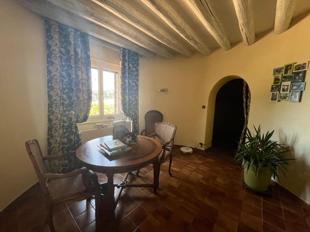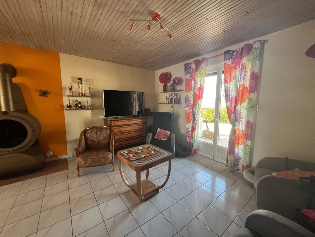 pièce de réception spacieuse avec un poêle à bois France Turbo haut rendement, cuisine américaine dinatoire ouvrant sur une terrasse orientée sud/est (partiellement couverte), une chambre, un bureau, une salle de bains, wc, une salle d'eau, buanderie.