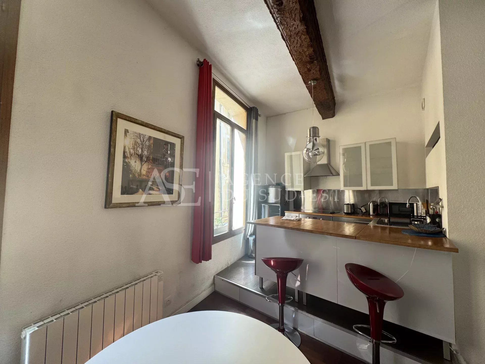 Nous proposons ce vaste T2 situé en plein centre ville : rue du puits neuf. Il se compose d'une belle pièce principale avec belle hauteur sous plafond et une cuisine ouverte. La partie nuit se compose d'une chambre avec rangements, une salle de bain et des wc séparés. Sur le palier, un cagibi avec machine à laver.