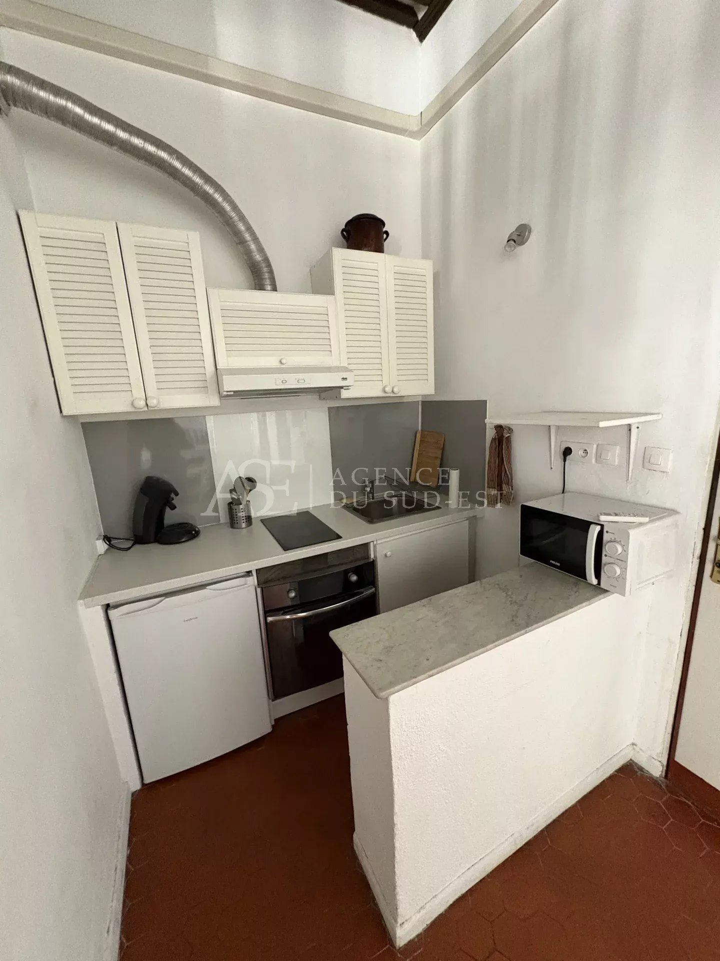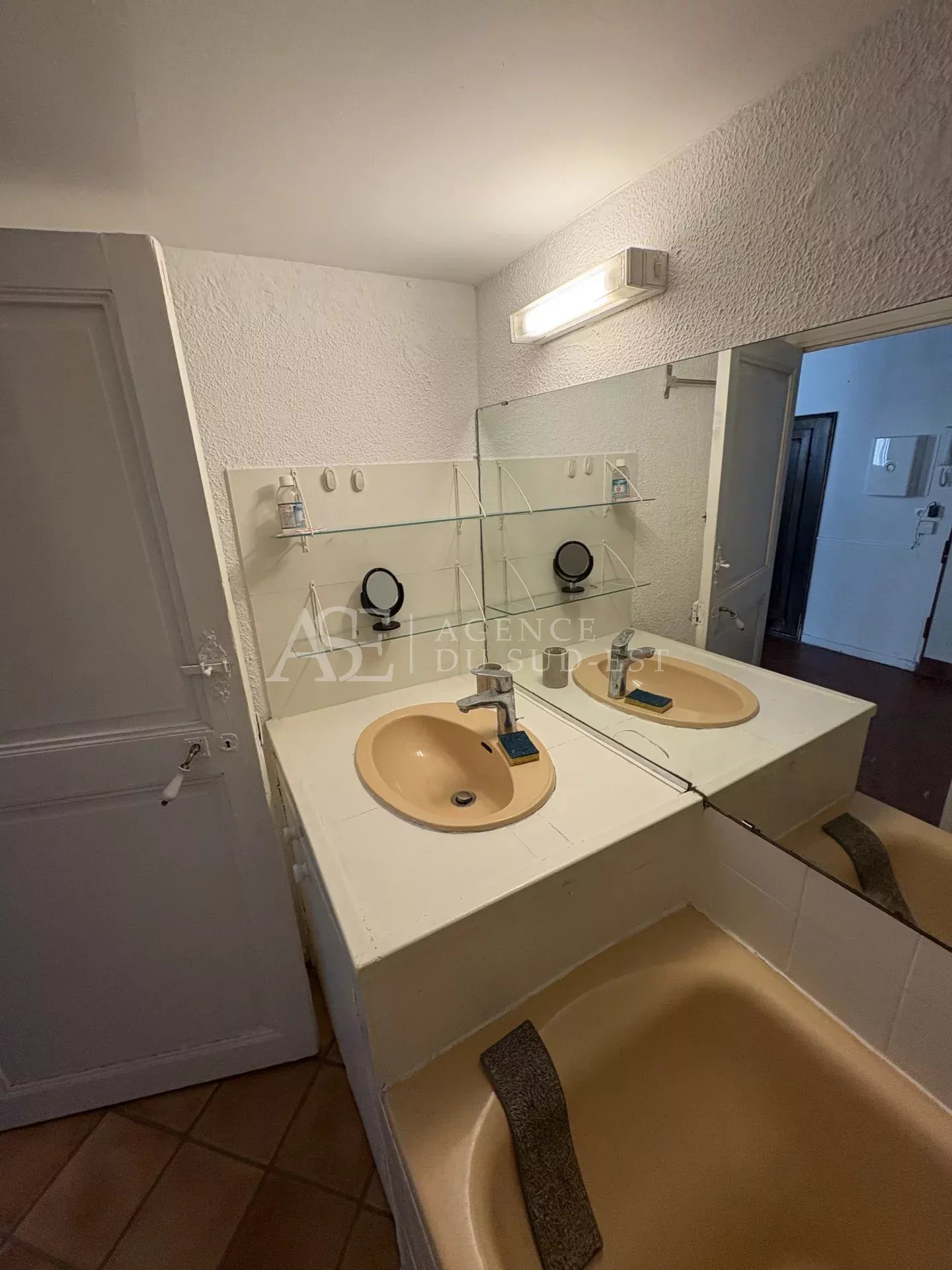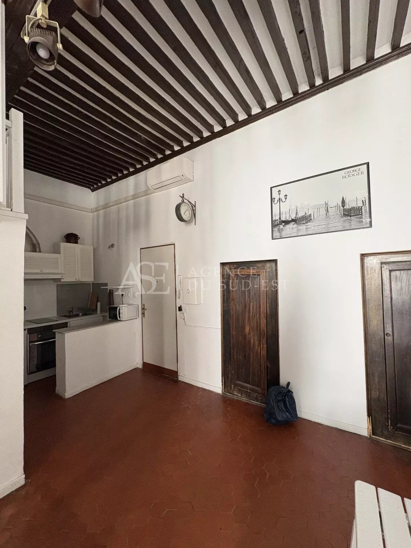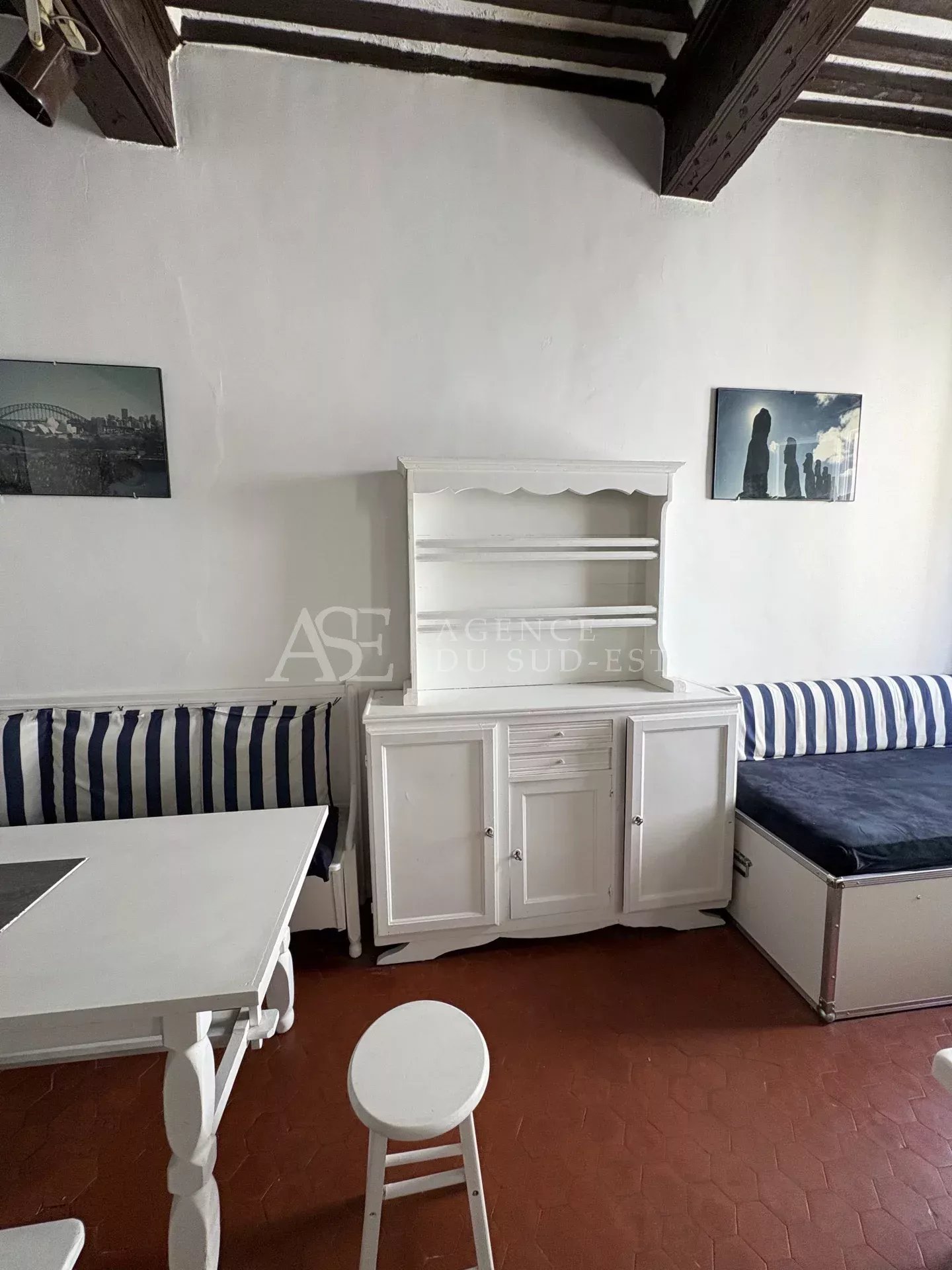 Appartement de type 2 meublé en centre ville d'Aix en Provence. Comprenant : un hall d'entrée, une pièce principale avec un coin cuisine et une mezzanine, 1 chambre, une salle de bains et wc.