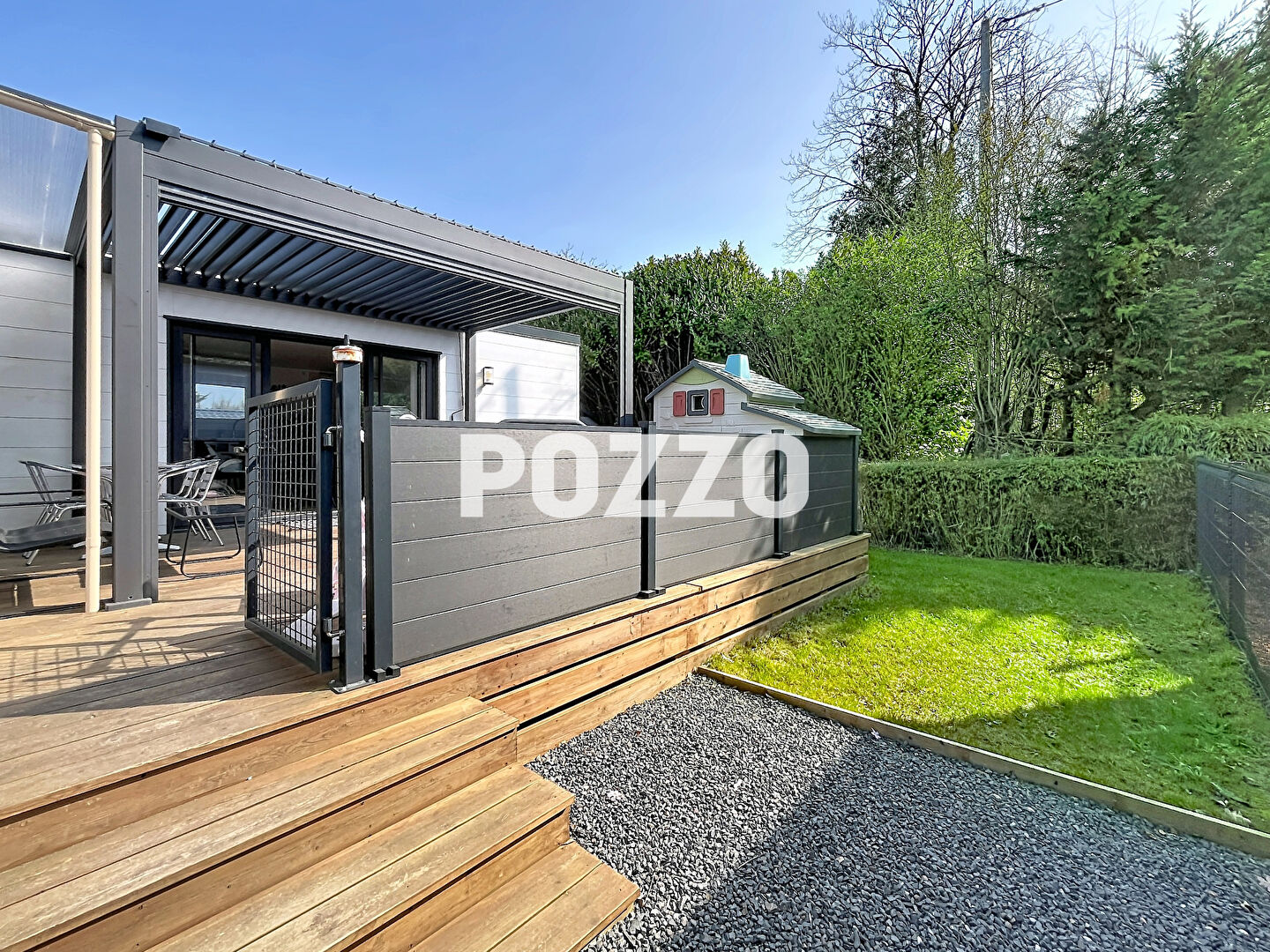 L'agence Pozzo de Douvres-la-Délivrande vous présente en exclusivité . Chalet récent de 2023 en excellent état, implanté à Ouistreham sur un terrain de 225 m² en pleine propriété, au sein d'un parc résidentiel de loisirs sécurisé. Construit pour privilégier le confort et la durabilité, il offre une terrasse exposée plein sud équipée d'une pergola bioclimatique, un abri jardin et la possibilité de stationner jusqu'à trois véhicules directement sur le terrain. Ce chalet offre un séjour lumineux avec une cuisine aménagée et entièrement équipée, idéal pour partager des moments conviviaux. Il dispose de trois chambres, d'une salle d'eau ainsi que d'un WC indépendant. Équipé d'un système de chauffage performant par pompe à chaleur ainsi que d'une climatisation, ce bien assure un excellent confort thermique en toute saison tout en permettant de réaliser des économies d'énergie. Rare sur le marché, ce chalet séduit par son excellent état et son emplacement privilégié au sein d'un environnement sécurisé. Il constitue un pied-à-terre idéal à proximité immédiate de la mer, tout en offrant également la possibilité d'y établir une résidence principale confortable et fonctionnelle. Copropriété de 25 lots - dont 25 lots habitation.