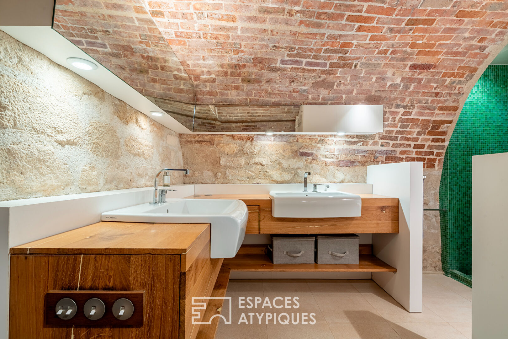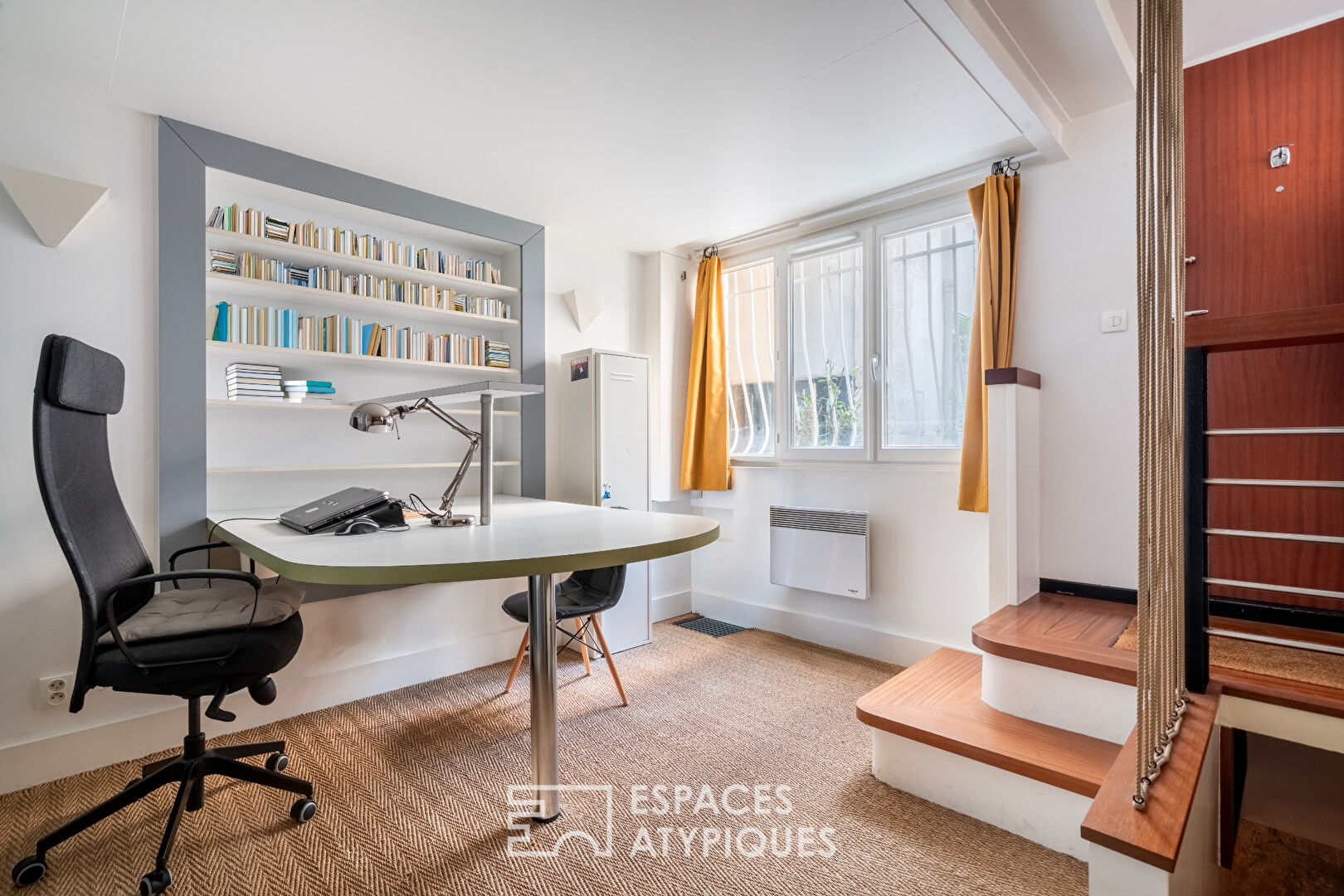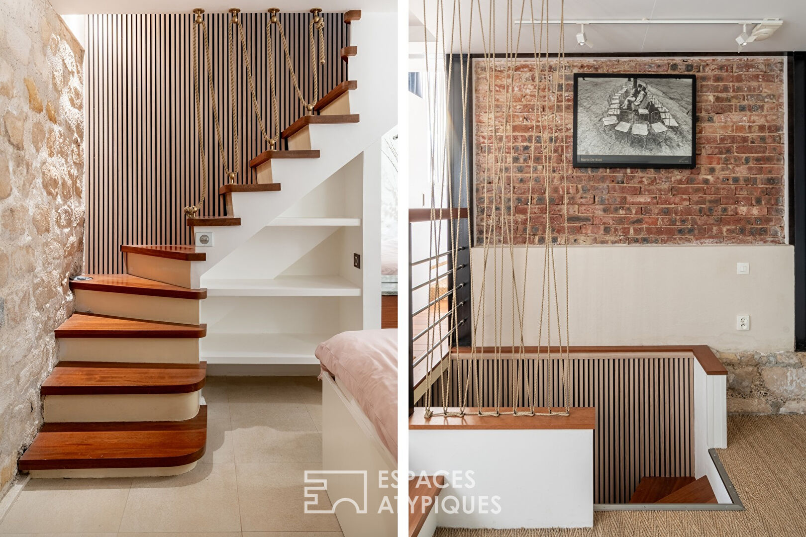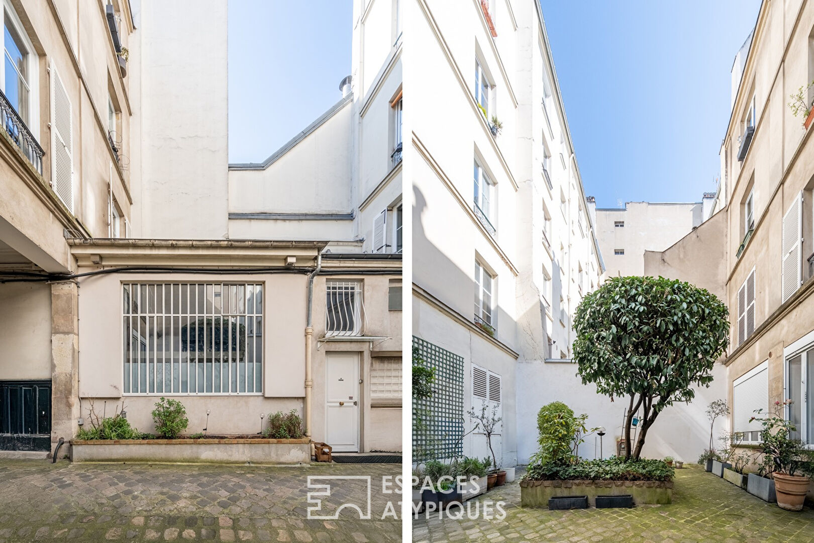 A proximité immédiate de la place de la Fontaine-Timbaud, ce triplex singulier cultive un art de vivre rare, entre effervescence urbaine et quiétude préservée. Derrière une façade discrète, ce bien singulier développe un véritable esprit maison, sans voisin au-dessus, et offre une surface de 77,48 m² au sol et 47 m² Carrez. Dès l'entrée, les volumes et les jeux de niveaux séduisent. Une première pièce accueille un espace bureau agrémenté de rangements sur mesure. La cuisine indépendante, aménagée et équipée, s'ouvre sur une pièce de vie chaleureuse sublimée par une belle hauteur sous plafond de 3,60 m et une lumière douce filtrée par de larges ouvertures sur cour. A l'étage, la chambre principale se distingue par son atmosphère intime, complétée par un dressing intégré ainsi qu'un cabinet de toilette avec WC. En souplex, une pièce de 10m² dévoile une ambiance feutrée, accompagnée d'une salle d'eau contemporaine avec douche à l'italienne, d'un espace buanderie et de WC. Entièrement repensé par architecte, ce bien mêle avec élégance matériaux bruts et finitions soignées : pierre apparente, bois chaleureux, claustras graphiques et agencements sur mesure participent à son identité unique. Un bien rare, au charme affirmé, idéal pour les amateurs de lieux atypiques en quête de calme en plein coeur de la ville. Une cave complète ce bien soumis au statut de la copropriété, des régularisations portant sur la destination sont à prévoir. Métro : Parmentier CLASSE ENERGIE : D / CLASSE CLIMAT : B. Montant moyen estimé des dépenses annuelles d'énergie pour un usage standard, établi à partir des prix de l'énergie de l'année 2021 entre 690 euros et 980 euros. Les informations sur les risques auxquels ce bien est exposé sont disponibles sur le site Géorisques : https://www.georisques.gouv.fr Contact : Flavie 06 18 08 66 31 RSAC : 753 302 892 Paris Copropriété de 133 lots - dont 45 lots habitation. Charges annuelles : 1620 euros. Flavie Guignard (EI) Agent Commercial - Numéro RSAC : 753302892 - Paris.