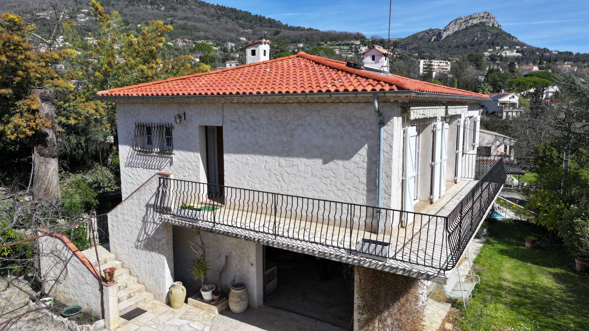 SOUS-OFFRE ACCEPTÉE A l'Ouest de VENCE, à deux kilomètres environ du centre ville et proche du collège, villa familiale de quatre pièces principales d'une surface totale de 182.60m², comprenant : - au rez-de-jardin : Grand garage de 80m², cave, local technique et cage d'escalier permettant l'accès direct au niveau supérieur. - à l'étage, espace habitable de 85.30m² composé de: Entrée, salon de 28.85m², cuisine indépendante, 2 chambres, salle de bains, WC indépendant, couloir et dégagements. La villa est édifiée sur un terrain plat de 1208m², au calme, et jouissant d'un bon ensoleillement avec une exposition Sud-Est. Elle nécessite une rénovation ainsi qu'une mise au goût du jour. Possibilité de rendre habitable la partie basse. Ce bien est idéal pour une famille. A découvrir. Gros potentiel à développer. (5.00 % honoraires TTC à la charge de l'acquéreur.)