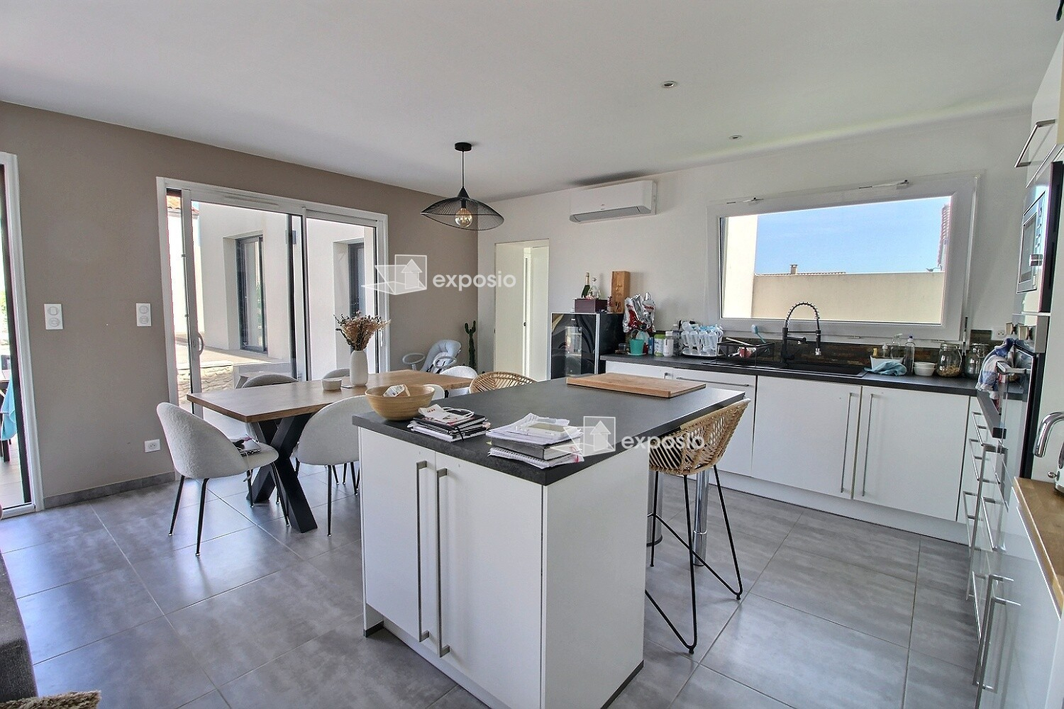 A Chauray, découvrez cette maison de plain-pied contemporaine, construite en 2016 et agrandie en 2024, offrant une surface habitable d'environ 123 m² baignée de lumière. Elle se compose d'une entrée avec placard et verrière, d'une vaste pièce de vie ouverte sur le jardin, intégrant une cuisine aménagée et équipée et un cellier. L'espace nuit propose quatre chambres, dont une suite parentale avec salle d'eau et WC privatifs, ainsi qu'une salle de bains avec douche et baignoire, et un WC suspendu indépendant. Le terrain de 498 m² est entièrement clos, agrémenté d'une terrasse en bois et d'une piscine. En annexes : un patio et un garage indépendant. Sous la responsabilité éditoriale de Clément PARTHENAY, agent commercial, immatriculé au RSAC de Niort sous le n°853444297 (3.71 % honoraires TTC à la charge de l'acquéreur.) Clément PARTHENAY (EI) Agent Commercial - Numéro RSAC : 853444297 - Niort.