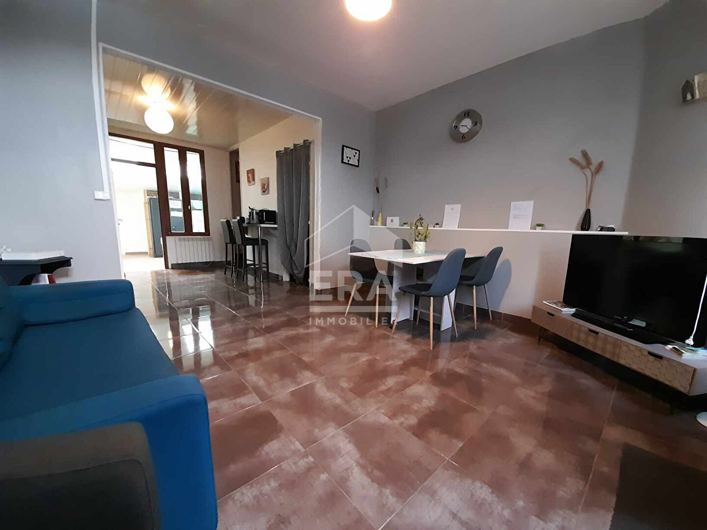 EXCLUSIVITÉ ERA CHAUNY, proche du centre, à quelques minutes des écoles et commerces, avec jardinet, à vendre Maison de ville, rénovée, cpt entrée/ séjour, cuisine ouverte meublée et équipée, grand salon, sdb, wc. A l'étage: 2 chambres. DPE : D BEAU VOLUME !