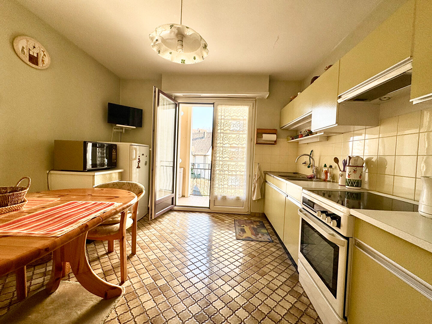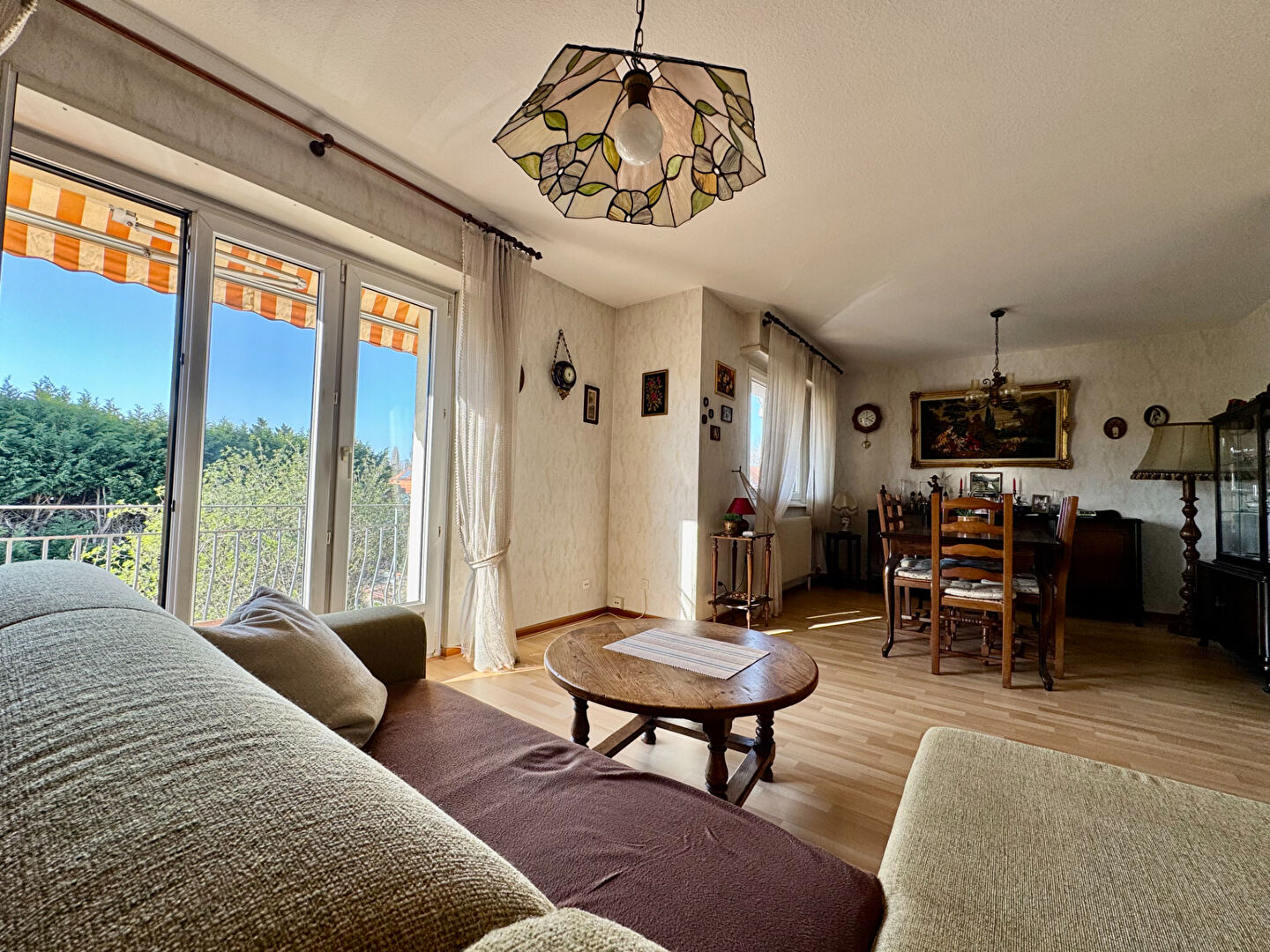 Appartement de 84 m² situé au 1er étage, en bon état général Classé DPE C, il présente une performance énergétique satisfaisante . Il se compose d'une cuisine conviviale avec coin repas ouvrant sur un balcon, ainsi qu'un salon / séjour lumineux donnant accès à une agréable terrasse, offrant un bel espace de vie. L'espace nuit comprend deux chambres, une salle d'eau et un WC séparé. Le logement est équipé d'un chauffage et d'une production d'eau chaude au gaz de ville. Les charges restent faibles, et son emplacement est particulièrement apprécié, à proximité immédiate des commerces et des services., facilite sortie autoroute et écoles. Une cave vient compléter ce bien, idéale pour le rangement. Un appartement fonctionnel et lumineux, parfaitement adapté pour une résidence principale ou un investissement. Prévoir rafraichissement au gout du jour . Copropriété de 66 lots. Charges annuelles : 923.08 euros.