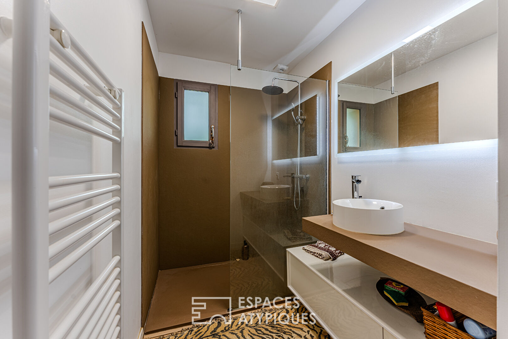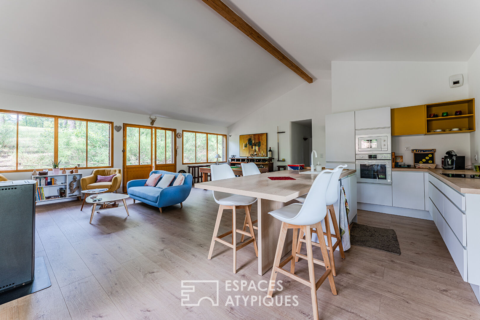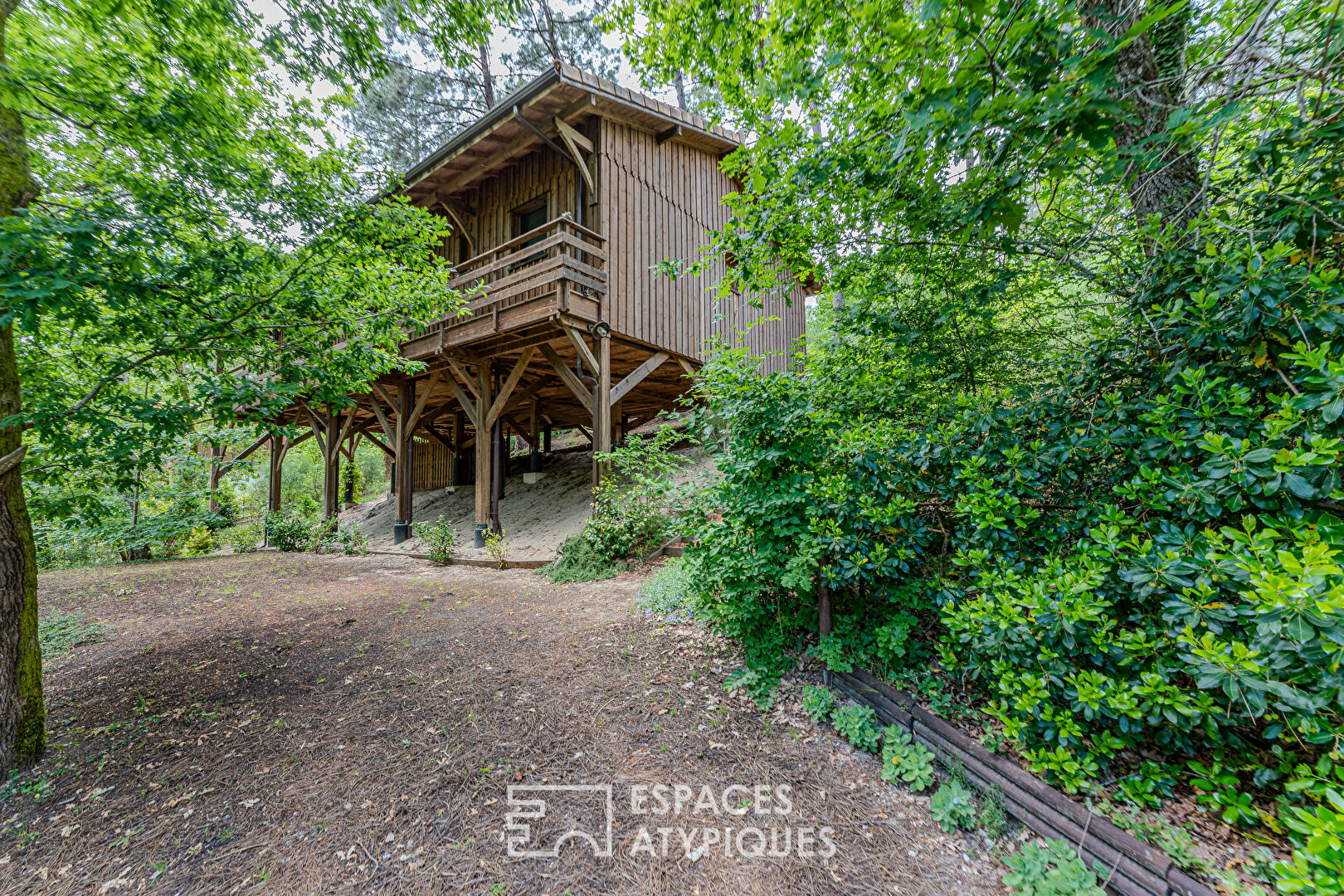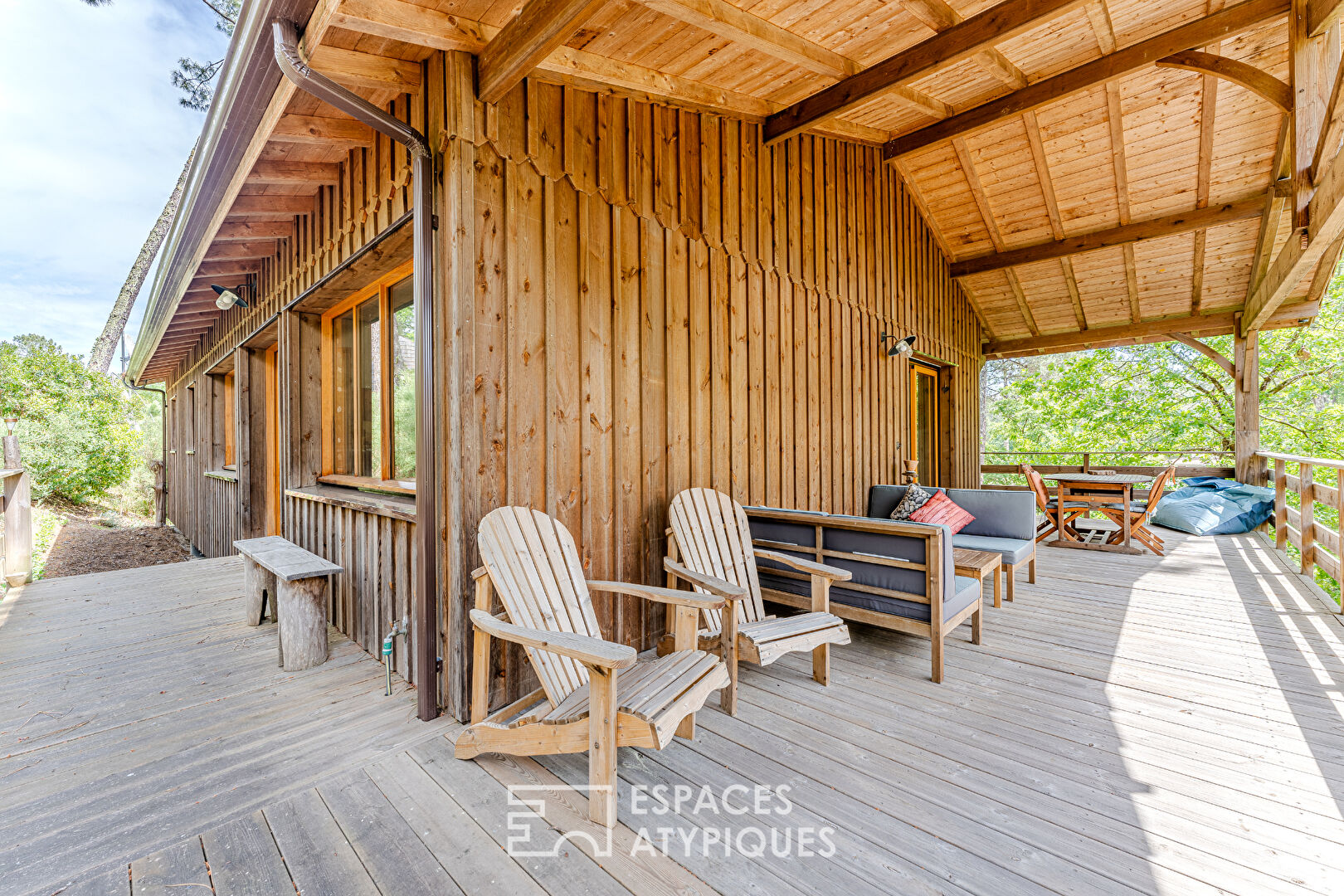 Nichée au coeur du domaine privé du golf de Biscarrosse, cette maison d'architecte de 104 m² séduit par son caractère singulier et son intégration parfaite dans un environnement naturel préservé. Suspendue sur pilotis, elle s'élève au milieu d'un terrain arboré de chênes, créant un véritable cocon végétal. Sa grande terrasse en bois prolonge harmonieusement la pièce de vie, invitant à profiter du calme et des vues dégagées sur la canopée. Un lieu de vie rare, en lisière directe du parcours de golf, dans un cadre verdoyant et confidentiel. L'intérieur se distingue par une architecture ouverte et lumineuse. La pièce de vie principale, orientée plein sud, développe 56 m² baignée de lumière naturelle, grâce à de larges baies vitrées qui encadrent le paysage. Le volume généreux permet une configuration fluide entre salon, salle à manger et cuisine ouverte. Trois chambres complètent les espaces nuit, ainsi qu'une salle d'eau contemporaine. Le bois et les matériaux naturels renforcent l'ambiance chaleureuse et apaisante du lieu. L'agencement a été pensé pour allier confort de vie et fonctionnalité, dans une atmosphère épurée. L'extérieur prolonge la sensation d'évasion. Implantée en surplomb, la maison se fond dans un jardin naturel peuplé de chênes. Le terrain, à la fois sauvage et maîtrisé, offre de belles possibilités d'aménagement paysager ou de création d'un espace de détente. Le domaine du golf garantit calme et intimité, tout en restant à proximité immédiate du lac et de la plage. Maison atypique par excellence, ce bien suspendu allie architecture contemporaine et immersion en pleine nature. Un équilibre rare entre design, sérénité et fonctionnalité. CLASSE ÉNERGIE : B / CLASSE CLIMAT : A Montant moyen estimé des dépenses annuelles d'énergie pour un usage standard, établi à partir des prix de l'énergie de l'année 2021 : entre 610 euros et 890 euros. Contact : Arnaud Schwizguebel tél : 06.84.25.71.00 RSAC : 941 363 046 Mont-de-Marsan ARNAUD SCHWIZGUEBEL (EI) Agent Commercial - Numéro RSAC : 941363046 - Mont-de-Marsan.