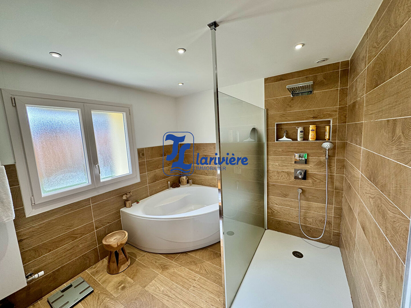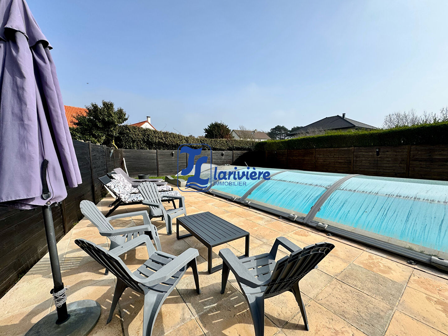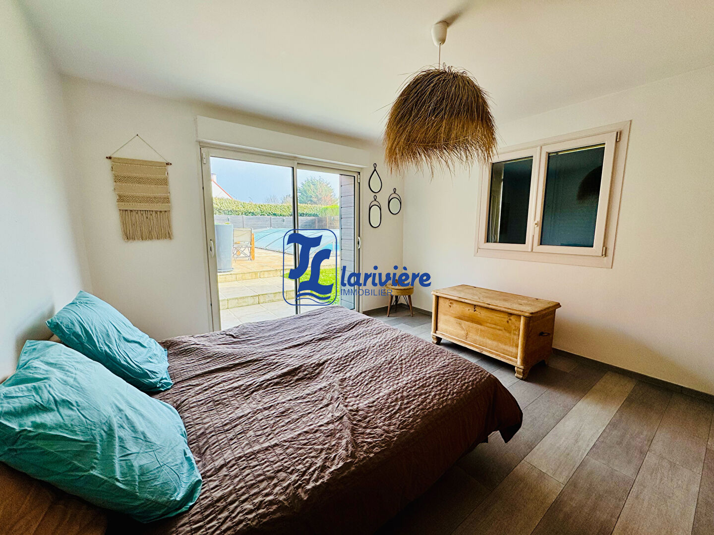 La maison est en excellent état et offre une vie facile de plain-pied. Maison individuelle rénovée en 2019 sur une parcelle de 917 m² proche de la plage et du golf en excellent état. Entrée, séjour 46 m² poêle à pellets, cuisine équipée signée, 2 chambres et salle d'eau. A l'étage : bureau, 3 chambres, dressing et rangement. Garage et cellier. Piscine chauffée et couverte. Tél ; Anouck Bouloy Tél : 06 377 372 00 (3.87 % honoraires TTC à la charge de l'acquéreur.)