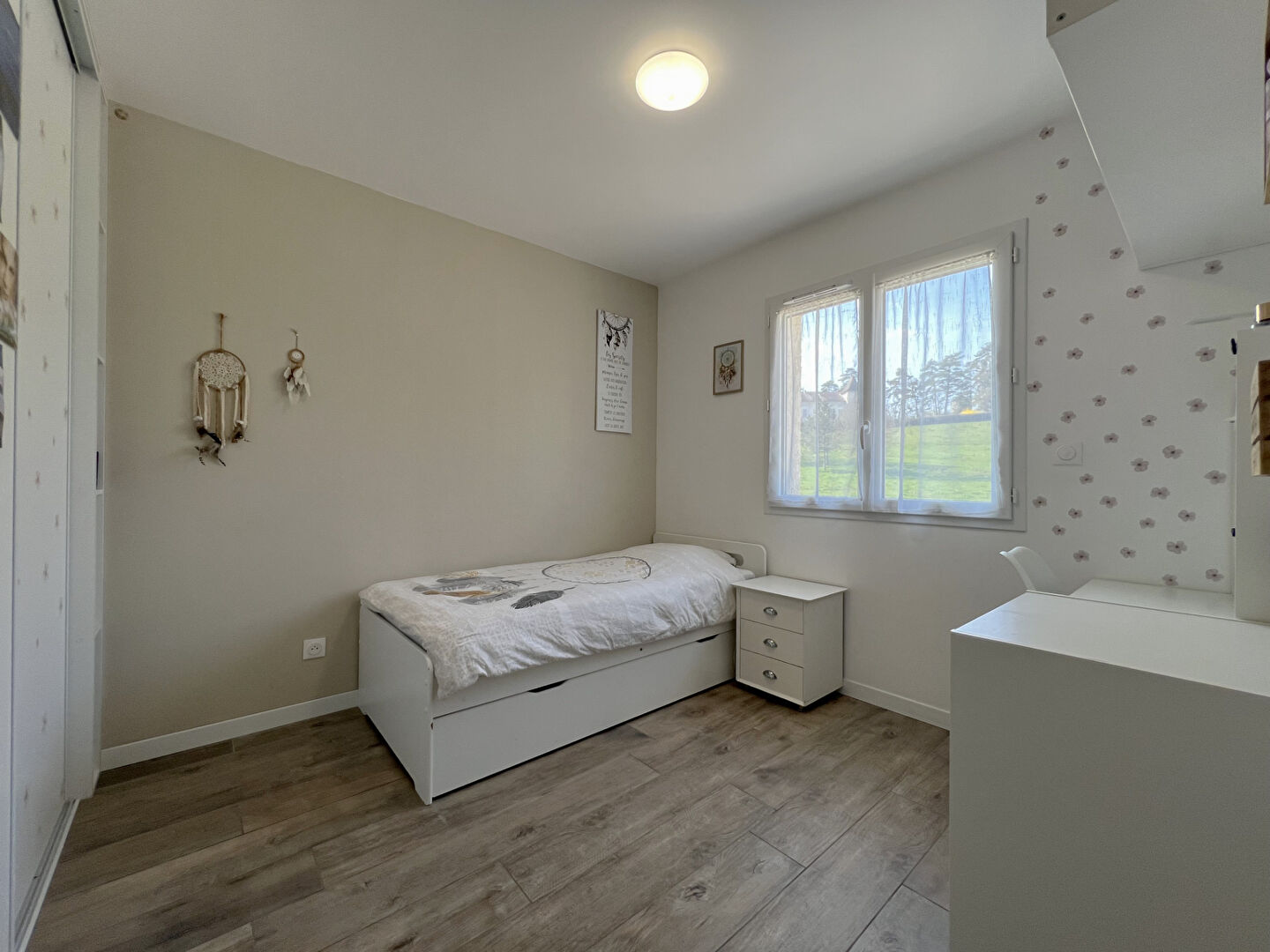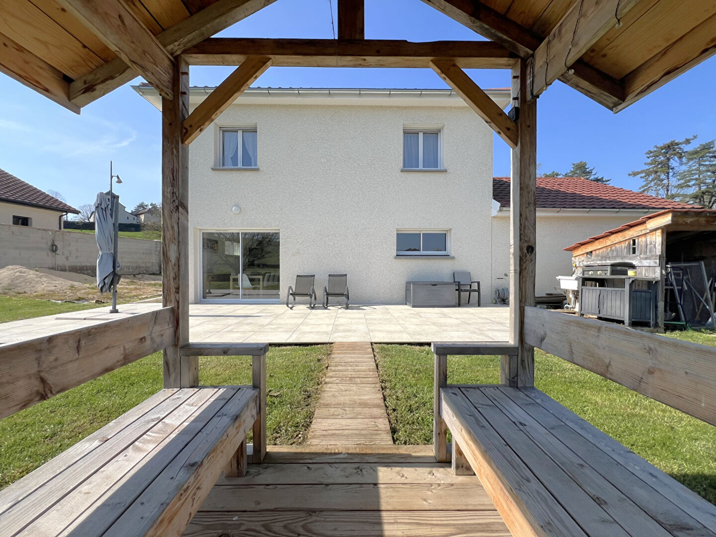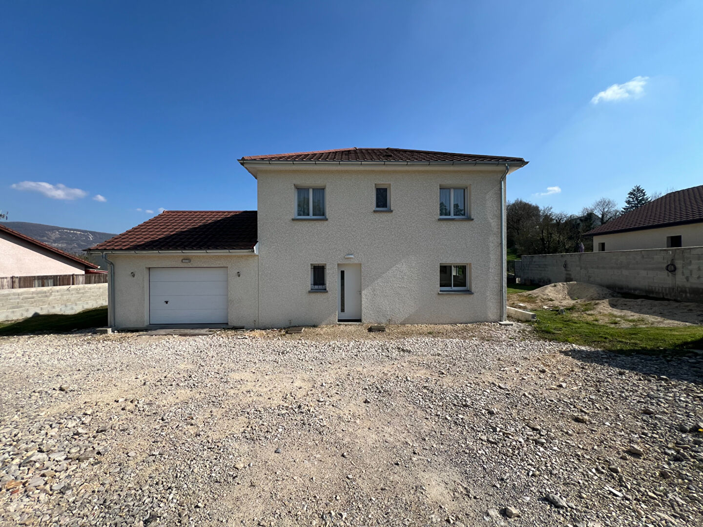 EXCLUSIVITE EMOTION IMMOBILIER ! Bouvesse-Quirieu, dans un environnement calme et résidentiel, cette maison moderne construite en 2020 de 110 m² offre un cadre de vie confortable, lumineux et parfaitement adapté à une vie de famille. Dès l'entrée, vous serez séduit par une belle pièce de vie baignée de lumière grâce à sa triple exposition. L'espace s'organise autour d'un séjour convivial ouvert sur une cuisine aménagée et équipée, avec un accès direct à la terrasse et au jardin, créant une continuité naturelle entre intérieur et extérieur. Une buanderie fonctionnelle, un WC indépendant ainsi qu'un accès direct au garage complètent ce niveau. A l'étage, le dégagement dessert quatre chambres aux volumes équilibrés ainsi qu'une salle de bains contemporaine, équipée d'une douche à l'italienne, d'une double vasque et d'un WC, pensée pour répondre aux besoins du quotidien. La maison bénéficie de prestations actuelles assurant un excellent confort thermique, avec un chauffage au sol sur les deux niveaux alimenté par une pompe à chaleur, des volets roulants électriques, un système domotique Delta Dore ainsi que des menuiseries aluminium pour les baies coulissantes. Implantée sur un terrain de 947 m², elle dispose d'un extérieur déjà structuré avec terrasse et murs de clôture. Quelques aménagements restent à prévoir, laissant la possibilité de personnaliser les extérieurs selon vos envies, notamment la réalisation de la cour et d'un gazon, la pose du portail et la finition des enduits des murs de clôture. Idéalement située, la maison permet un quotidien pratique avec l'école maternelle et primaire accessible à pied en quelques minutes, un arrêt de bus à proximité immédiate ( 200m ), et l'ensemble des commodités (supermarché, médecins, services) accessibles en seulement 5 minutes en voiture. Cette maison récente, sans travaux intérieurs à prévoir, constitue une opportunité rare sur le secteur pour acquérir un bien moderne, économe en énergie et immédiatement habitable, tout en conservant un libre choix d'aménagement extérieur à vos gouts. Vous avez un projet de vente ? Bénéficiez de notre expertise locale et de nos services premium : - Photos professionnelles - Prises de vue drone - Vidéo immersive - Diffusion multi-portails - Accompagnement personnalisé jusqu'à la signature Contactez-nous pour une estimation offerte et sans engagement.