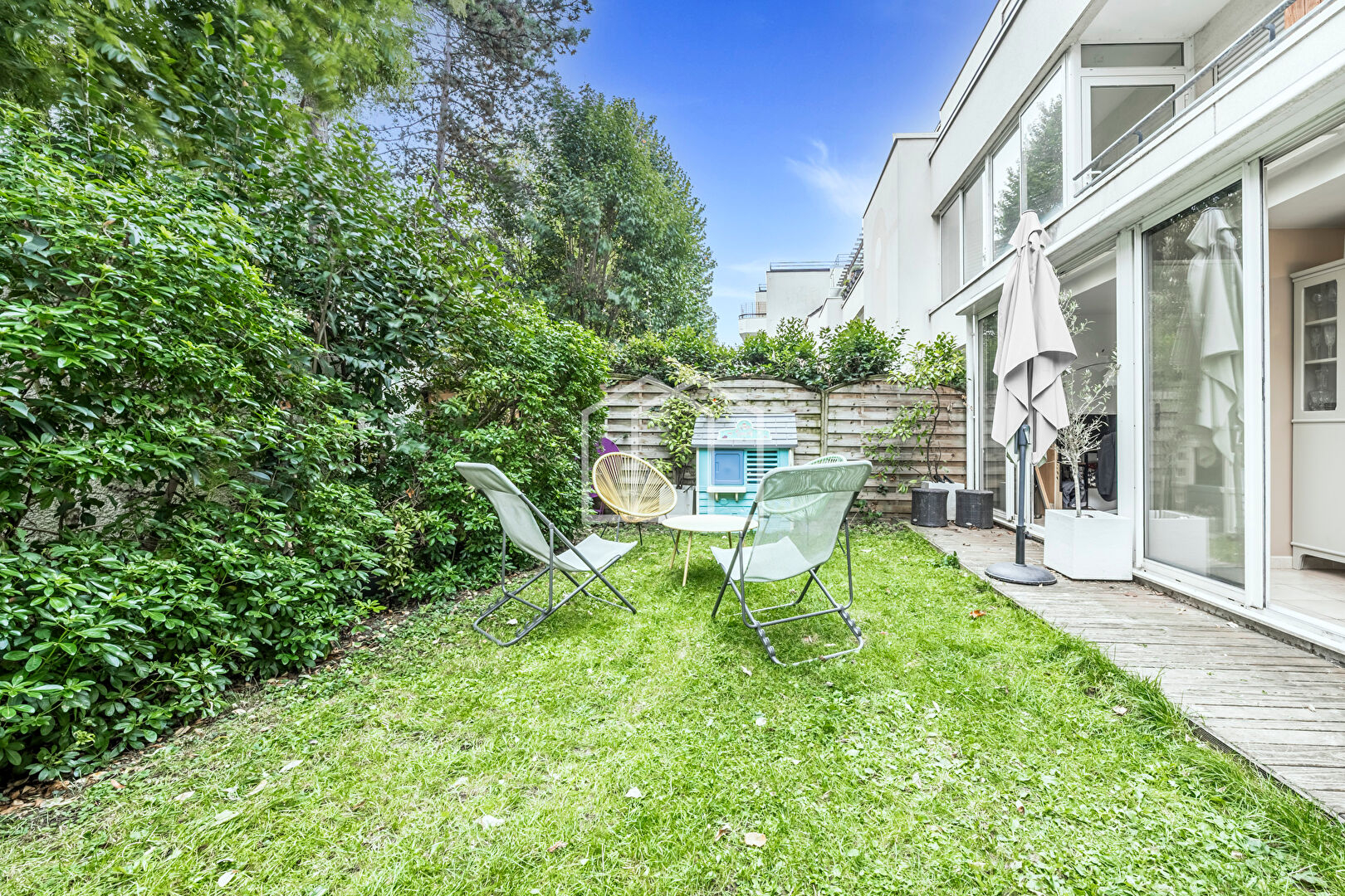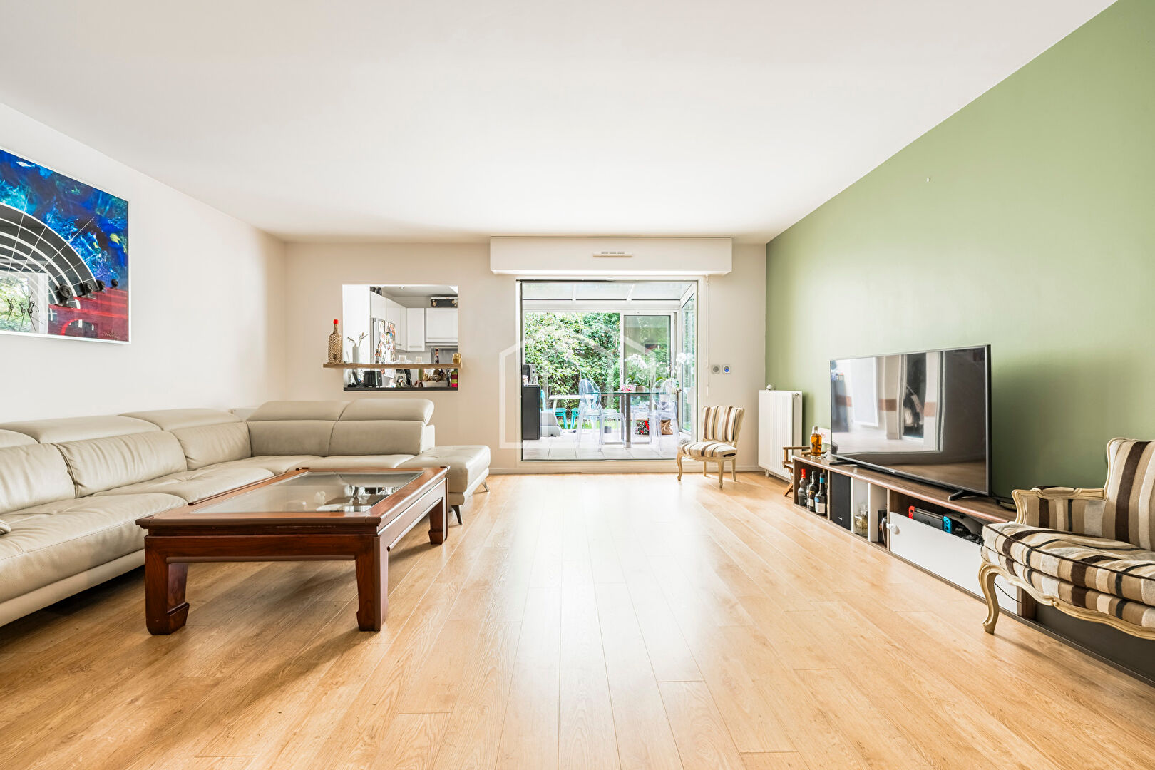L'agence VILLA D'OUEST vous présente un bel appartement de 3/4 pièces situé en rez-de-jardin ; il se compose d'un grand séjour ouvert sur une spacieuse véranda faisant office de salle à manger, une cuisine semi ouverte aménagée et équipée, un joli jardin arboré de 60 m², de deux chambres, une salle de bains, un bureau, un dressing et un WC séparé. Superbe appartement fait comme une maison, au calme et à l'abri des regards ! Une cave complète ce bel ensemble. Une place de parking en sous-sol dans la résidence est proposé en supplément. Proximité directe du centre ville de PUTEAUX, et des commerces, transports et écoles. A voir au plus vite ! (3.58 % honoraires TTC à la charge de l'acquéreur.) Copropriété de 25 lots. Charges annuelles : 5240 euros.
