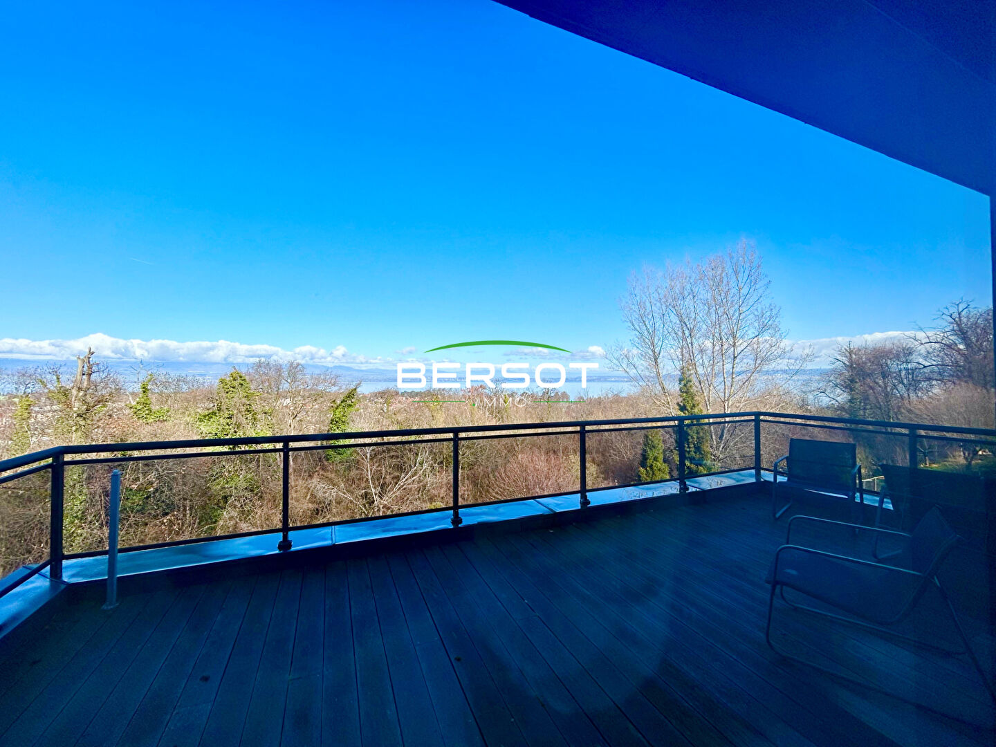 Située au fond d'une impasse à Publier, dans un environnement résidentiel calme et recherché, cette maison contemporaine mitoyenne offre 210 m² habitables et une vue sur le lac Léman. Édifiée sur une parcelle de 440 m², elle séduit par ses volumes généreux, sa luminosité et la qualité de ses prestations. Dès l'entrée, vous découvrez une magnifique pièce de vie d'environ 64 m², largement ouverte sur l'extérieur grâce à de grandes fenêtre. Cet espace accueille salon, salle à manger et cuisine dans une atmosphère conviviale et lumineuse. A l'étage, l'espace nuit se compose de trois chambres (11 m², 12 m² et 13 m²). Deux d'entre elles bénéficient d'un accès à une superbe terrasse de 36 m² offrant une vue dégagée sur le lac Léman. Une salle de bains moderne avec douche à l'italienne et WC complète ce niveau. Le rez-de-jardin propose de beaux volumes supplémentaires avec deux grandes chambres, une de 16 M2 et une suite parentale d'environ 25 m² avec dressing et salle d'eau privative. Une buanderie ainsi qu'une salle de jeux actuellement aménagée en salle de projection complète ce niveaux. Un garage de 21 m² ainsi que quatre places de stationnement extérieures complètent ce bien. Une maison idéale pour une famille recherchant calme, espace et vue sur le lac à quelques minutes d'Évian-les-Bains. Pour plus d'informations ou pour organiser une visite, contactez-moi dès maintenant : Maéva Roy-Ruffier, Agente commerciale, EI enregistré au RSAC de Thonon-les-Bains sous le n°928 561 042 O618721655 mroy-ruffier@bersot.net