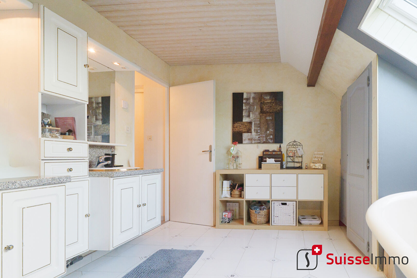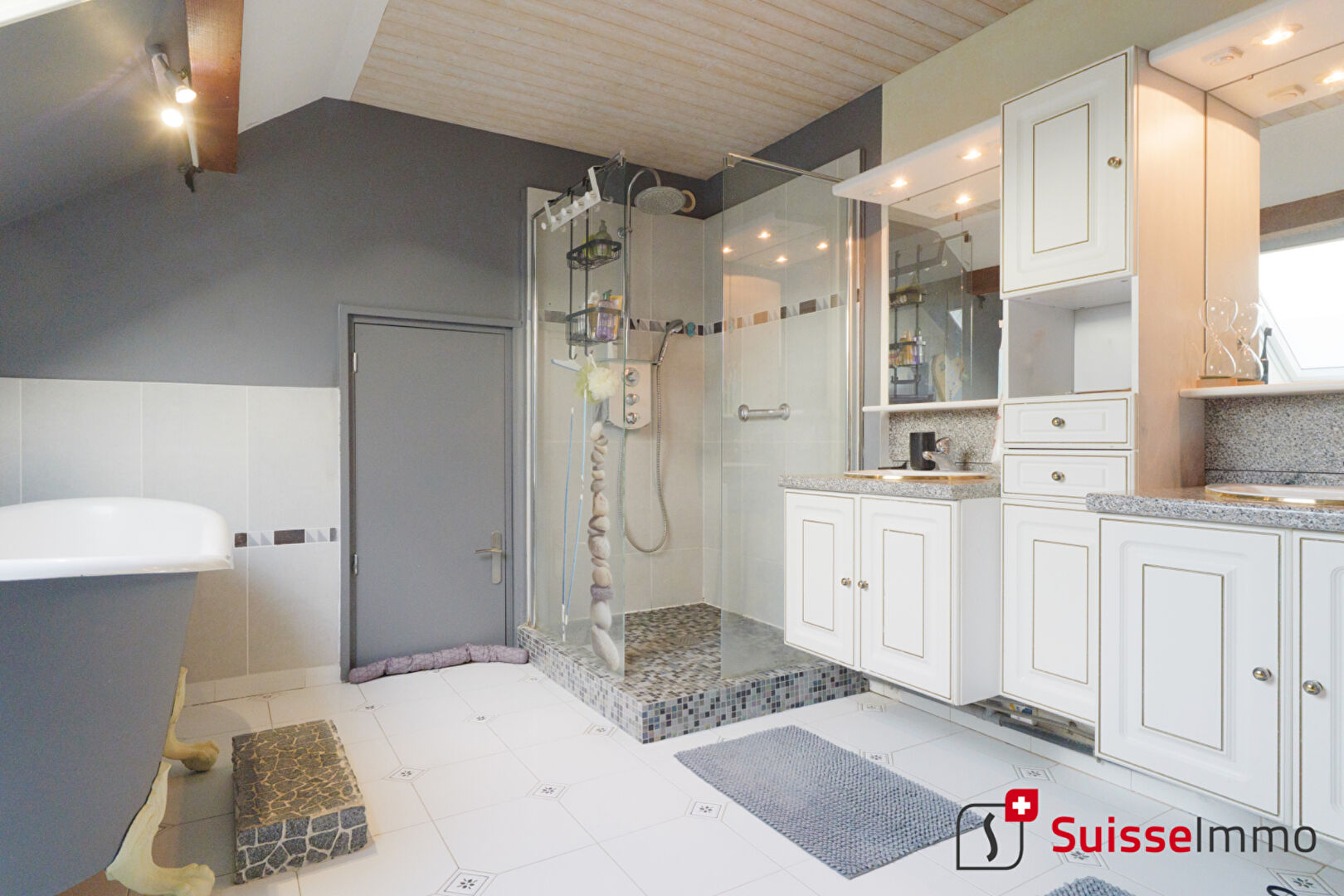 Nouvelle exclusivité Suisse Immo ! Découvrez dans un quartier prisé de Montbéliard - à proximité de toutes les commodités et des entrées-sorties d'autoroute - cette maison de 1985 rénovée. LES + : - DPE C - Chauffage par Pompe à chaleur + Poêle à granulés (2021) - Fenêtres PVC + porte entrée de 2022 - Jardin clôturé avec portail électriques, terrasse couverte - Carport 2 voitures - 4 chambres, dressing - Assainissement conforme Surface habitable 130 m2 Surface au sol 150 m2 Au RDC : - Hall - Salon séjour (29 m2) - Cuisine (16m2) - Chambre (14,67 m2) - WC - Buanderie A l'étage : - 3 chambres (12 / 12 /9 m2 hab., 15,8/12/11 m2 au sol) - Grande salle de bains complète - Dressing (22,87 m2 au sol) - WC - Dégagement