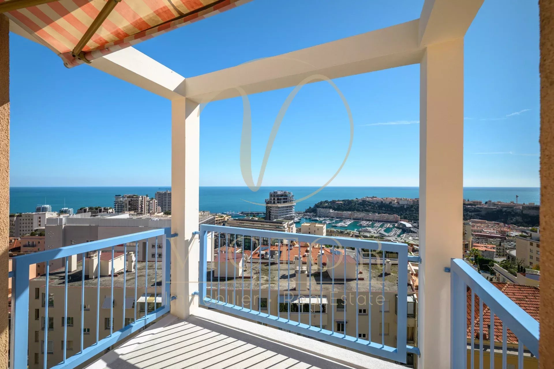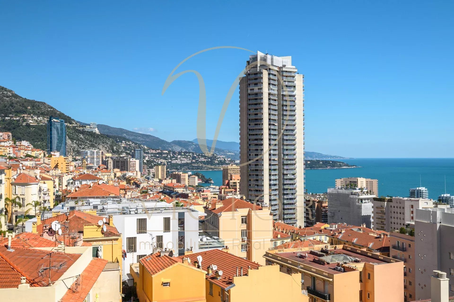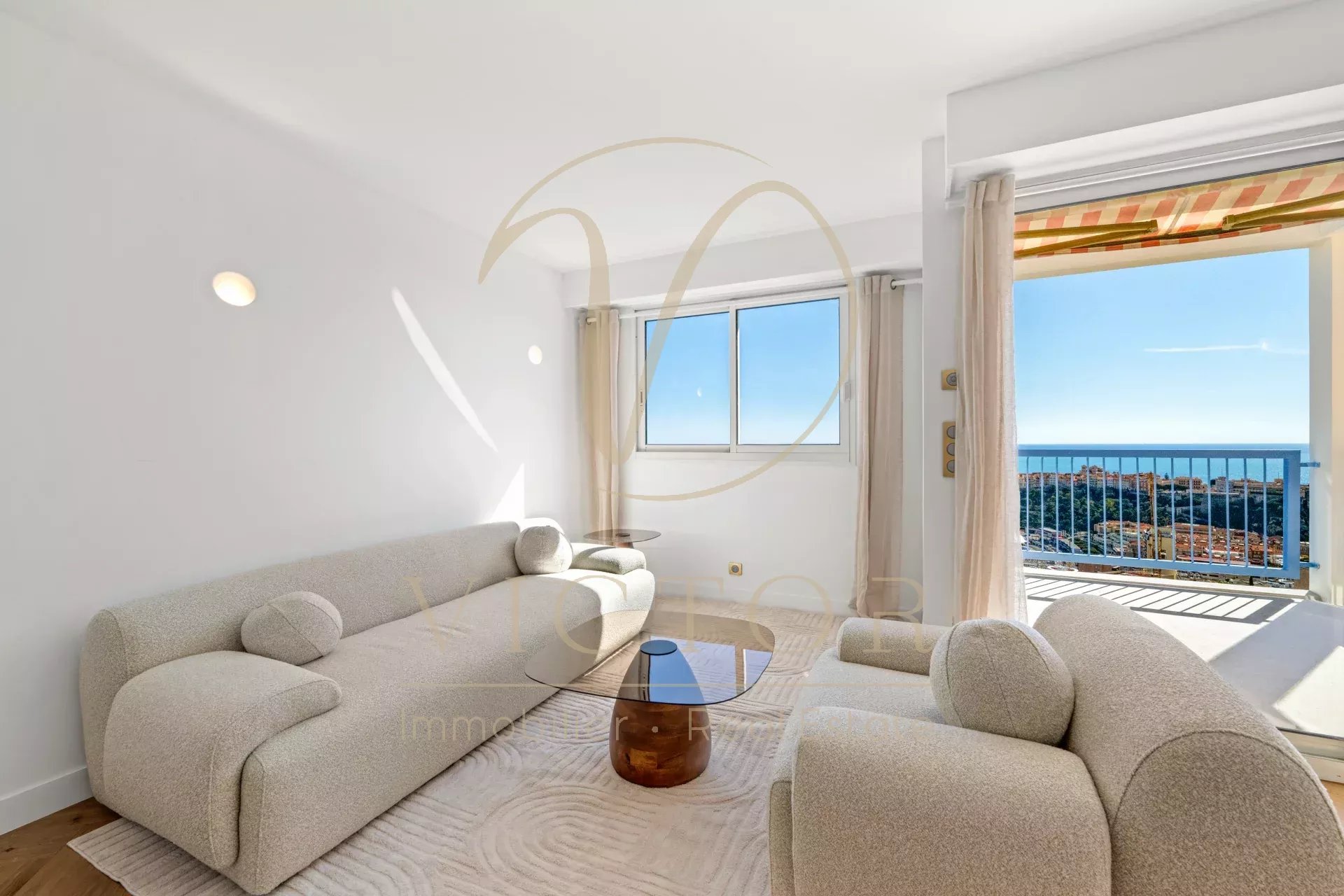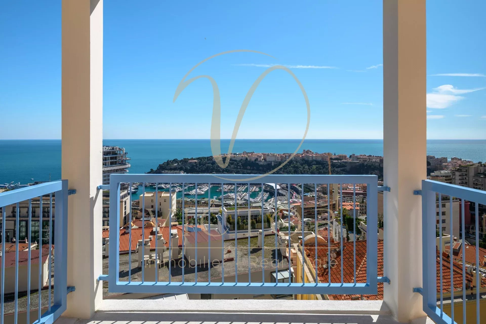 Aux portes de Monaco - position dominante Appartement de type 3p en dernier étage d'un immeuble de 6 étages avec ascenseur. 2 Terrasses avec VUE MER ET COLLINES Rénové avec goût. séjour avec cuisine ouverte de pratiquement 30m². 2 chambres avec chacune sa salle de douche. dressing. 2 toilettes. coin buanderie. Une cave et possibilité d'acquérir un garage de plain pied sur cour en supplément. Honoraires d’agence à la charge du vendeur. DPE : Classe énergie B (108 kWh/m²/an) – Classe climat A (4 kg CO₂/m²/an). Montant estimé des dépenses annuelles d’énergie pour un usage standard : entre 700 € et 1020 € par an (prix moyens des énergies indexés sur les années et 2023). Bien soumis au statut de la copropriété. Nombre de lots : 12 – Charges annuelles : 2232 €. Procédure en cours : non. Les informations sur les risques auxquels ce bien est exposé sont disponibles sur le site Géorisques : georisques.gouv.fr