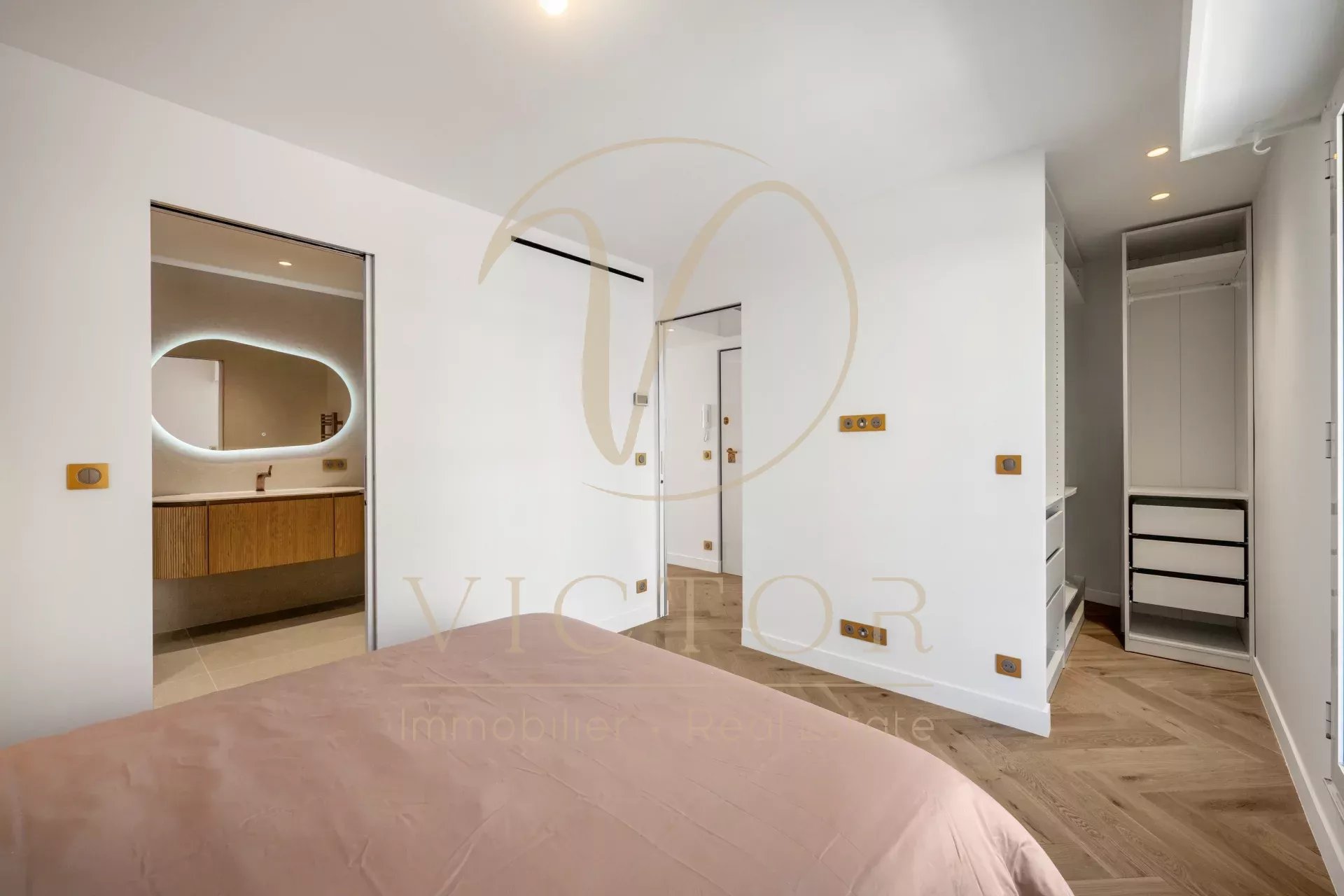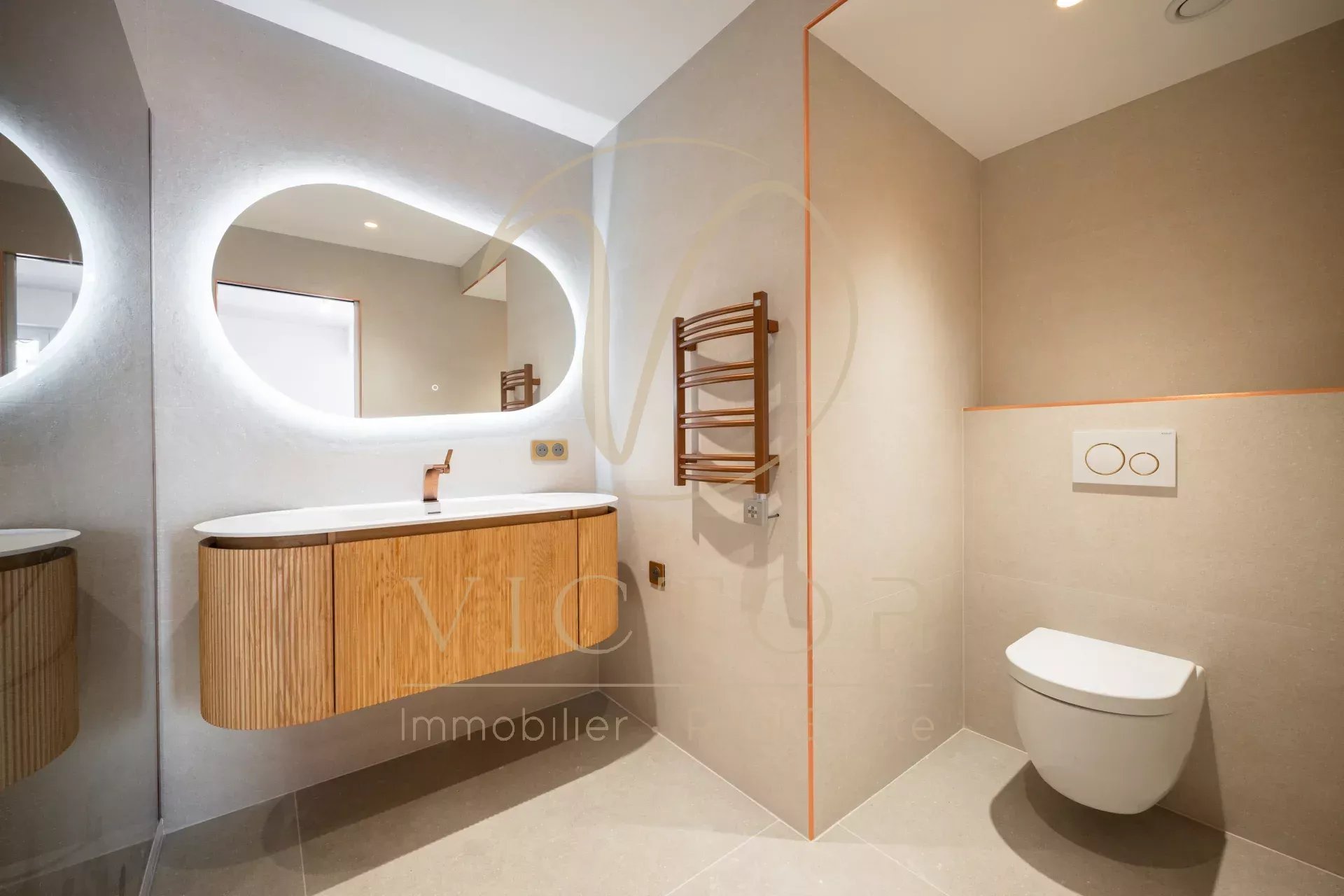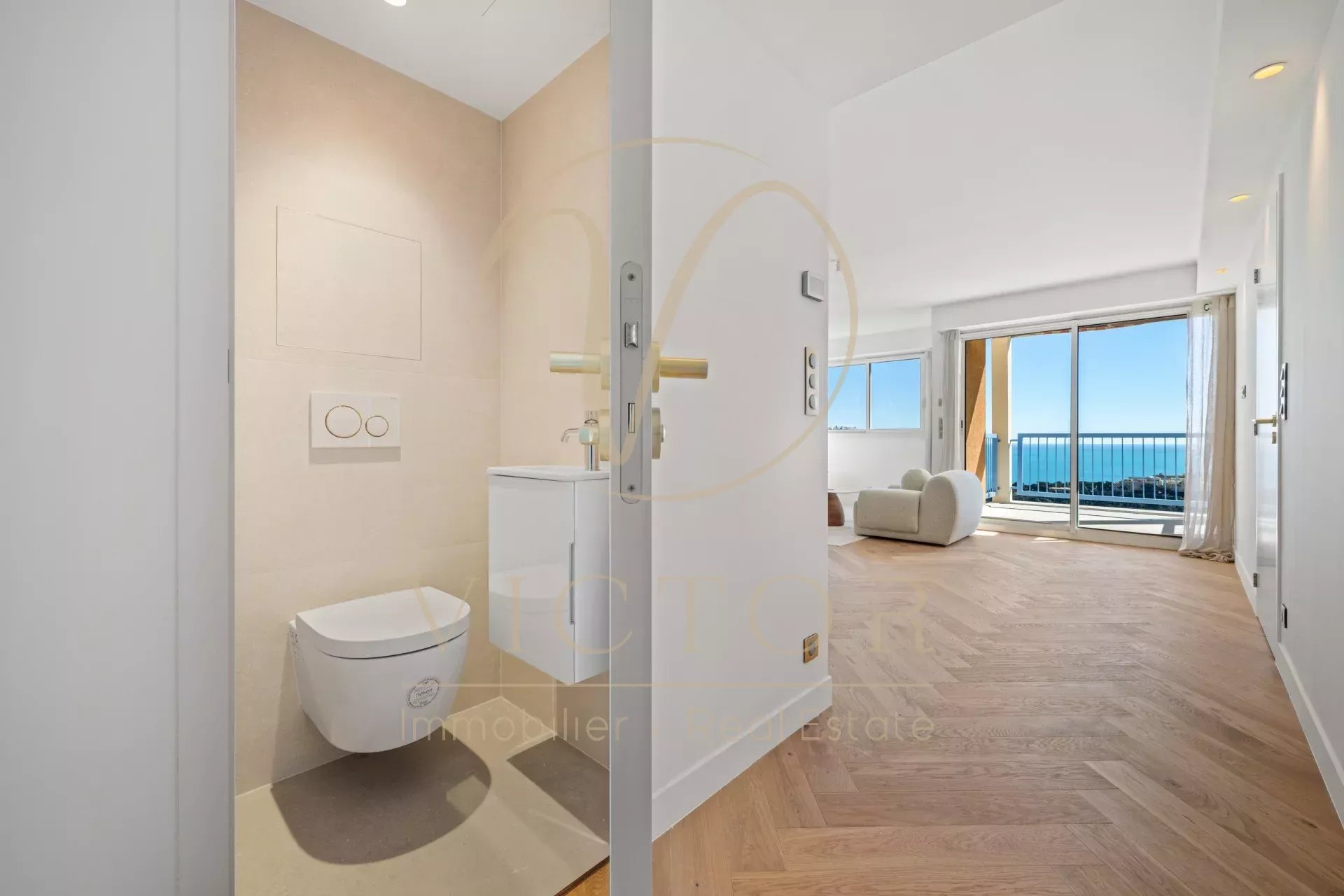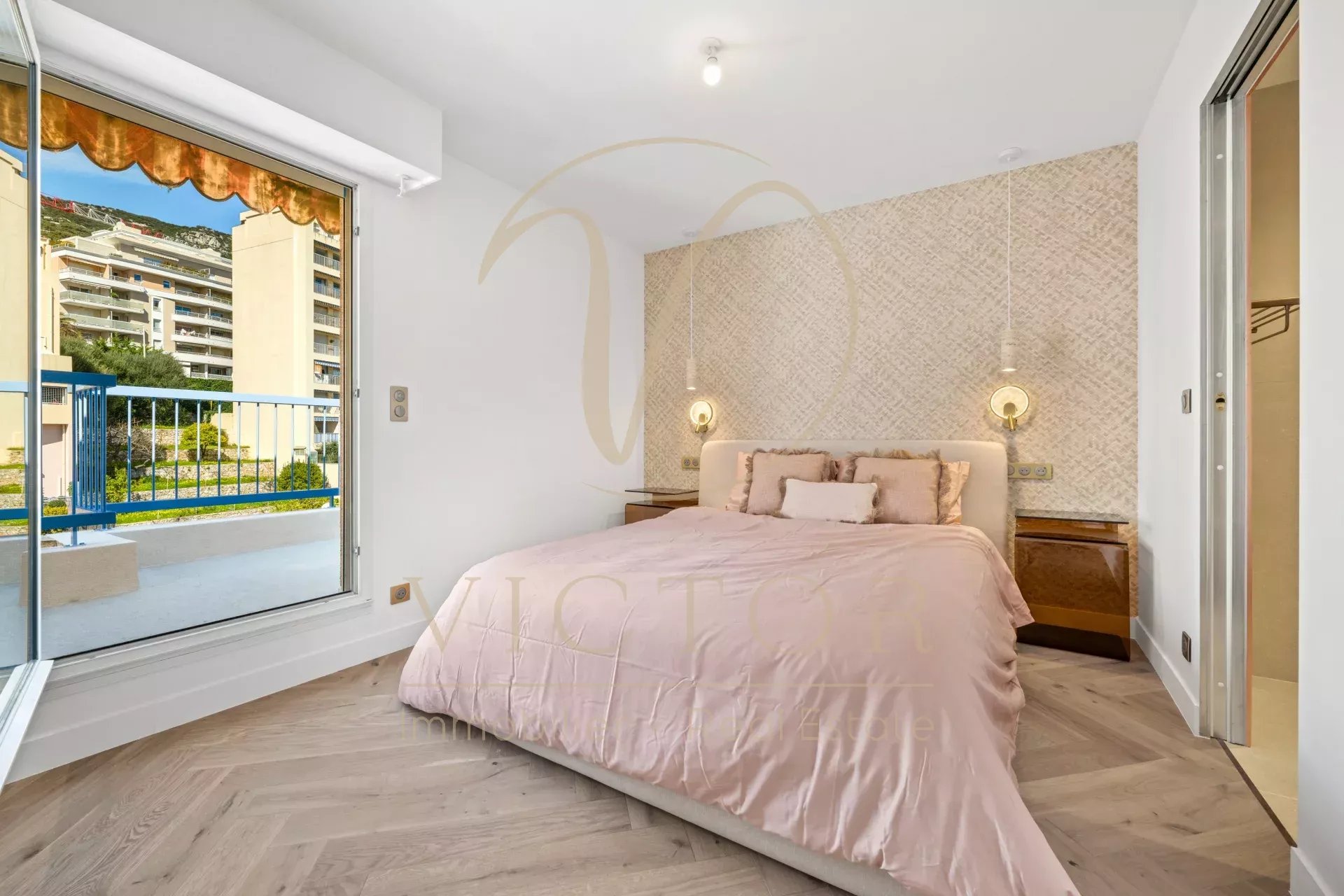 Aux portes de Monaco - position dominante Appartement de type 3p en dernier étage d'un immeuble de 6 étages avec ascenseur. 2 Terrasses avec VUE MER ET COLLINES Rénové avec goût. séjour avec cuisine ouverte de pratiquement 30m². 2 chambres avec chacune sa salle de douche. dressing. 2 toilettes. coin buanderie. Une cave et possibilité d'acquérir un garage de plain pied sur cour en supplément. Honoraires d’agence à la charge du vendeur. DPE : Classe énergie B (108 kWh/m²/an) – Classe climat A (4 kg CO₂/m²/an). Montant estimé des dépenses annuelles d’énergie pour un usage standard : entre 700 € et 1020 € par an (prix moyens des énergies indexés sur les années et 2023). Bien soumis au statut de la copropriété. Nombre de lots : 12 – Charges annuelles : 2232 €. Procédure en cours : non. Les informations sur les risques auxquels ce bien est exposé sont disponibles sur le site Géorisques : georisques.gouv.fr