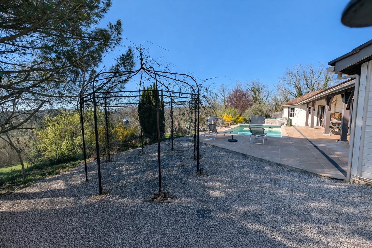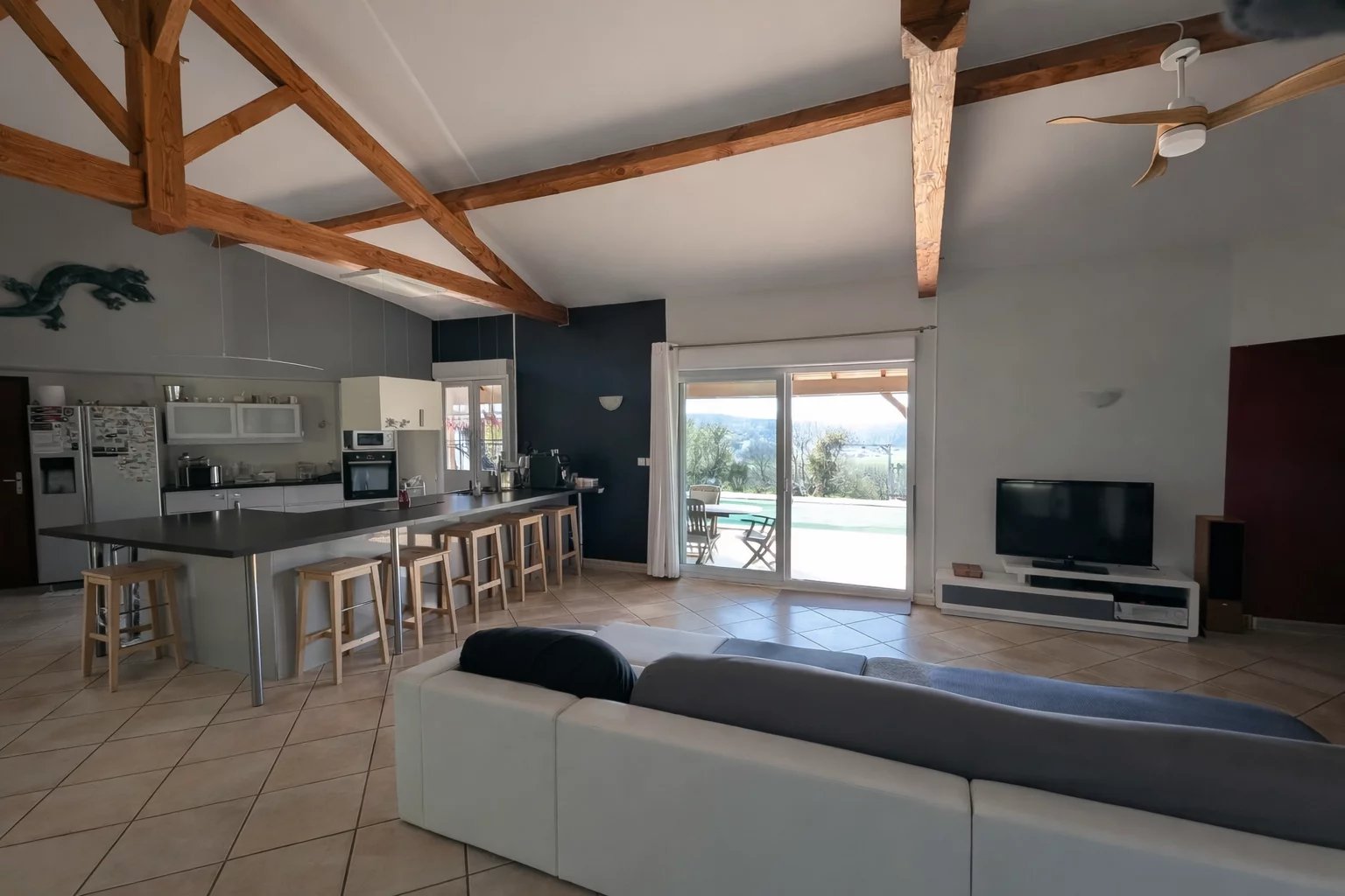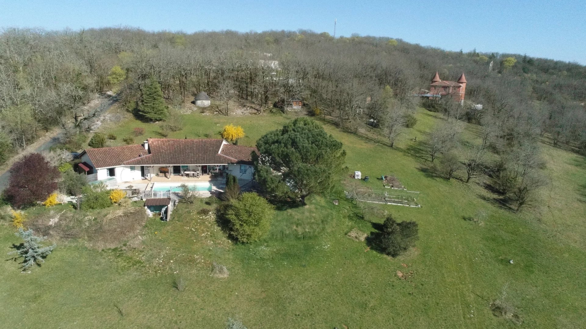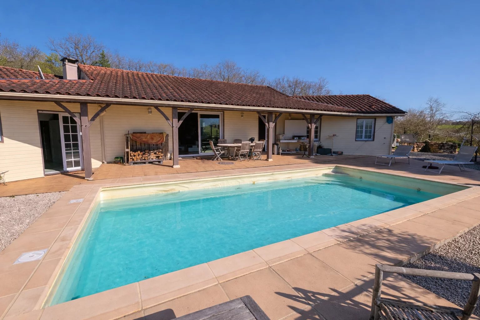Située dans un environnement privilégié avec une vue imprenable, cette maison implantée sur la commune de Salviac vous séduira par ses volumes et ses prestations de qualité. Elle se compose d’un vaste séjour avec cuisine ouverte de 75 m², baigné de lumière, donnant directement sur une terrasse et une piscine avec une vue exceptionnelle. La partie nuit est desservie par un couloir comprenant : une salle de bain équipée d’une baignoire balnéo, d’une douche, d’un WC et d’une vasque 4 chambres (14 m², 12,50 m², 12,20 m² et 12 m²) WC indépendant Vous trouverez également : un vestiaire à l’entrée (idéal pour manteaux et chaussures) une buanderie Une chambre en suite indépendante (douche, vasque, wc) un espace garage pouvant accueillir 2 véhicules Côté équipements : cuve de récupération d’eau de pluie de 3000 L (alimentation possible des WC et machine à laver) chauffe-eau relié à des panneaux solaires pompe à chaleur réversible insert à bois À l’extérieur : piscine 8x4 (chlore, 2018) bassin terrain d’environ 1,5 hectare avec guinguette, cabanon de jardin et chalet bois de 20 m² point d’eau extérieur pour le jardin Assainissement conforme (fosse toutes eaux). 👉 Surface habitable : 165 m² Un bien rare, idéal pour les amoureux de nature, alliant confort moderne et cadre exceptionnel.