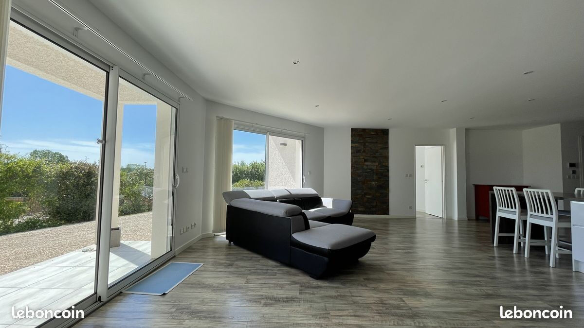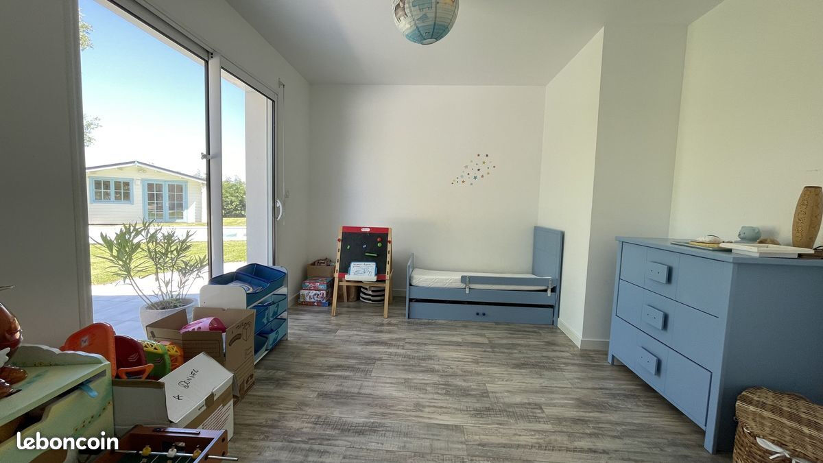 Maison contemporaine, de 2012, sur un terrain clos avec piscine et pool house. De plain pied, elle se compose d'une entrée avec placards, 1 WC,.Une Belle pièce de vie de 52 m² avec cuisine équipée et meublée, ouverte sur le salon. Arrière cuisine. salle de bains. 3 belles chambres lumineuses tournées sur le jardin et la piscine, dont une suite parentale avec salle d'eau et dressing. Garage. Grandes baies vitrées avec volets roulants électriques. Chauffage électrique par le sol sur l'ensemble. Portail électrique.Informations LOI ALUR :
