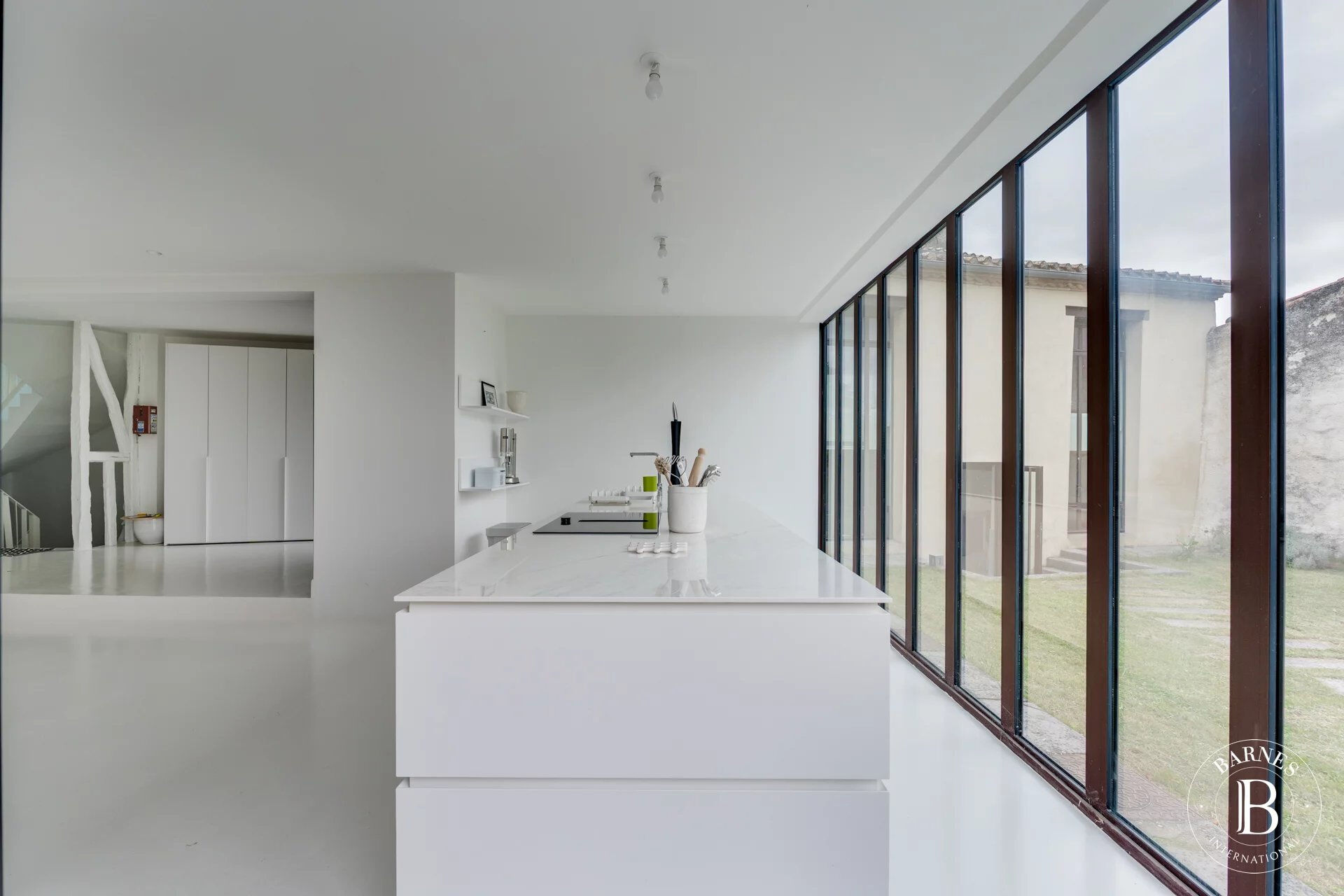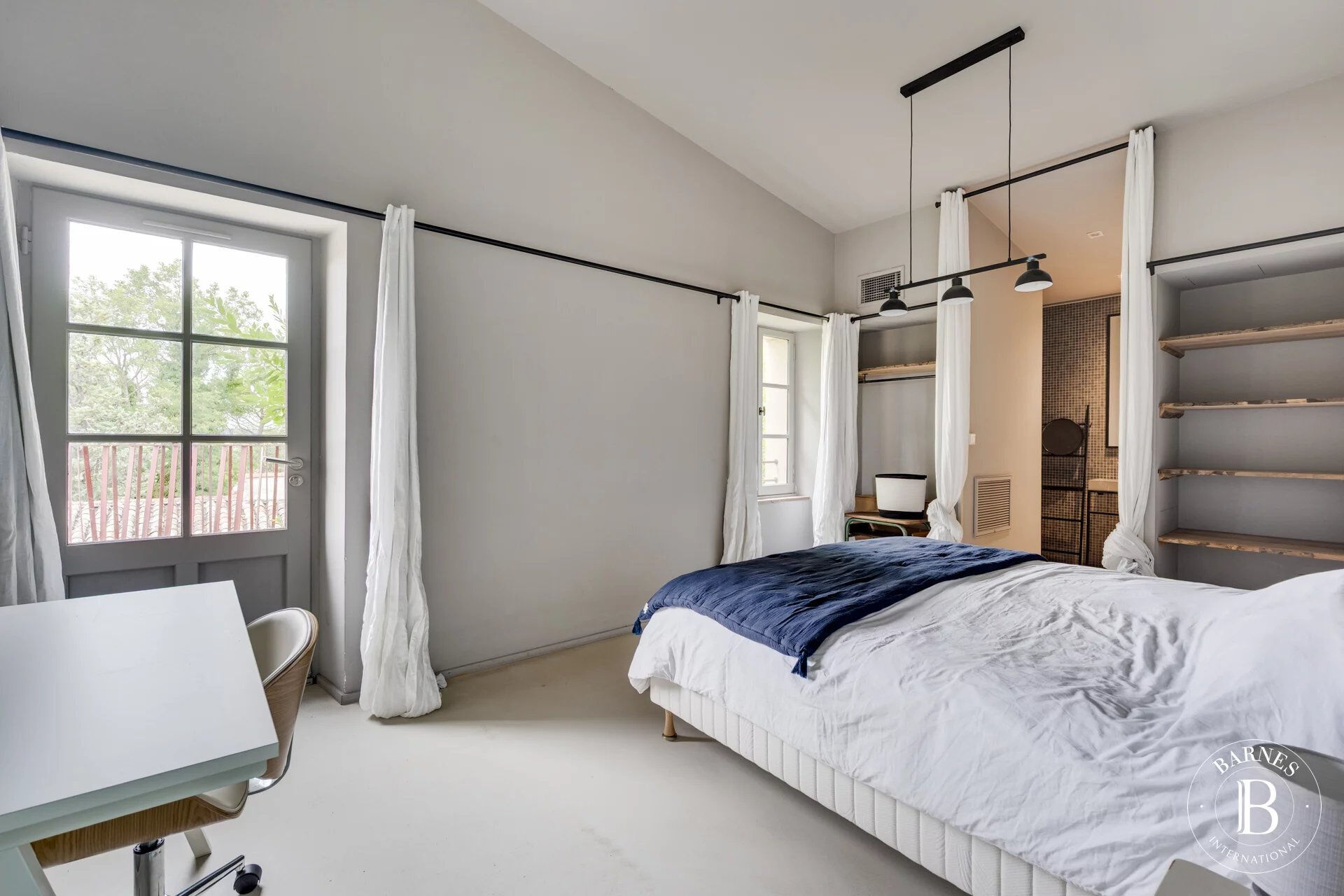Alliance parfaite et subtile entre authenticité et lignes contemporaines, la maison principale se compose d'une cusine ultra moderne et épurée ouvrant sur une pièce de vie lumineuse et généreuse, d'un salon cosy, d'une buanderie et d'un toilette indépendant.