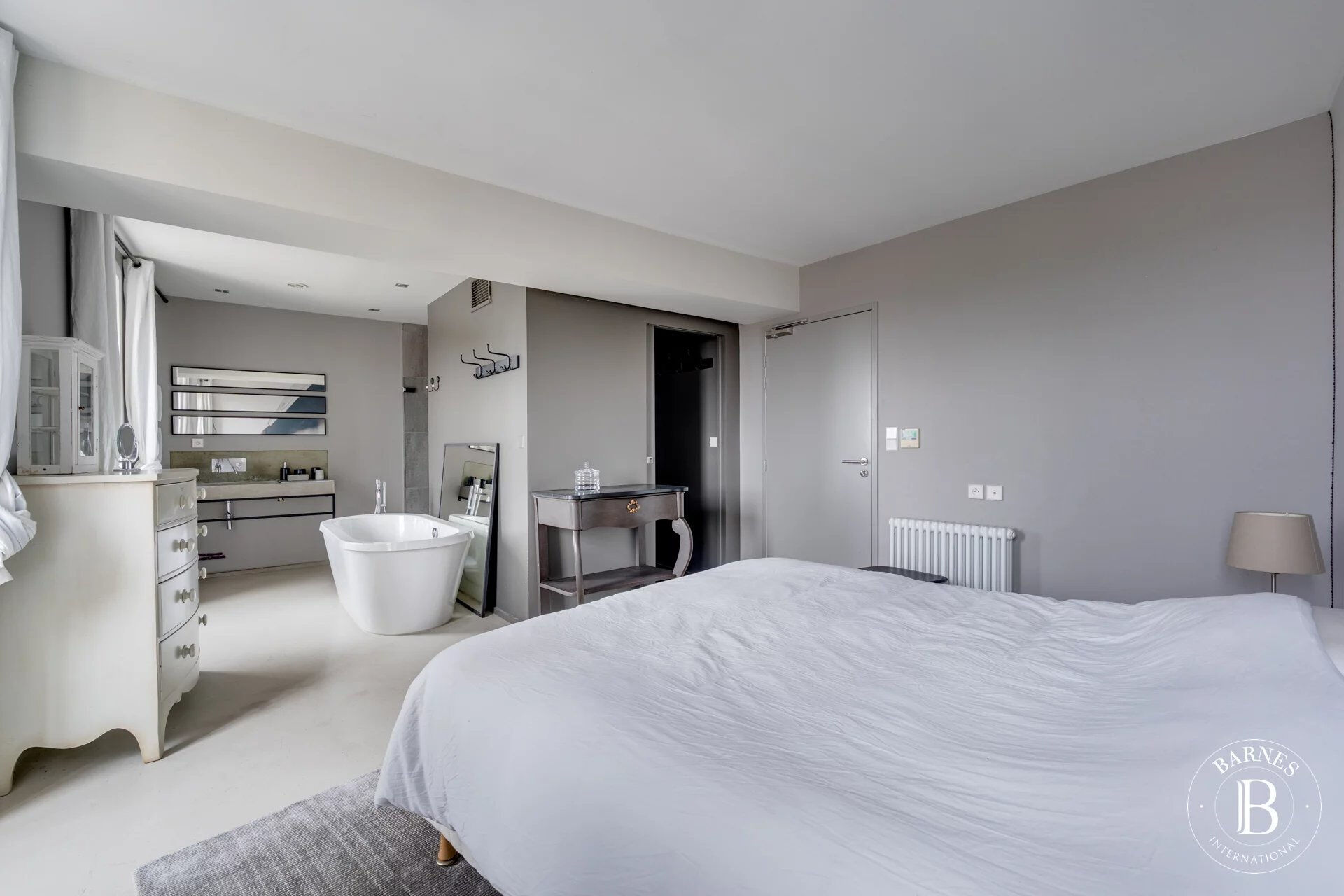 A l'extérieur, un magnifique jardin intime d'environ 490 m² accueille une vaste piscine chauffée aux lignes épurées.