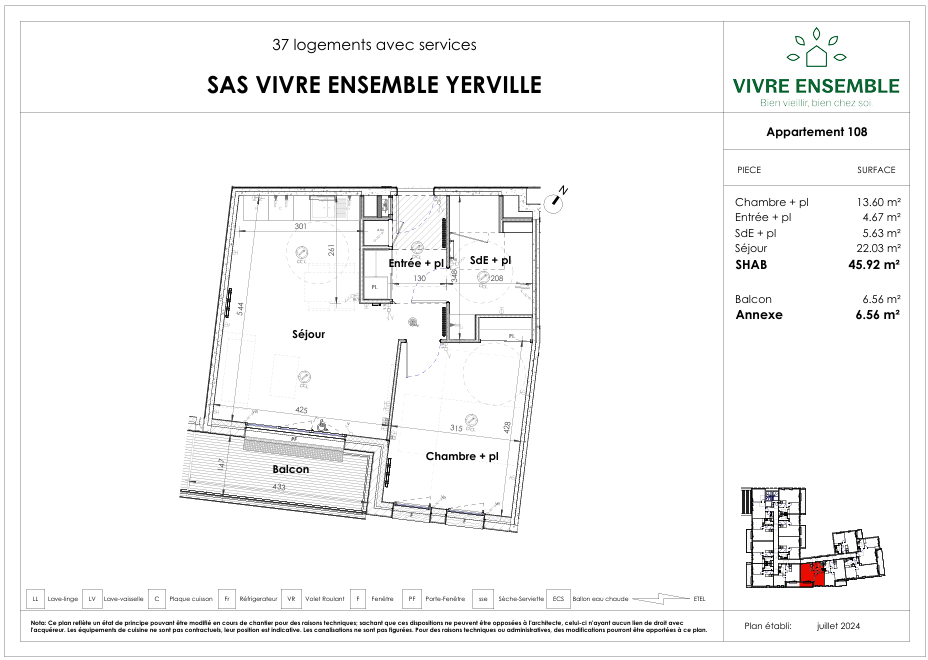 À louer dans une nouvelle résidence senior à Yerville (livraison prévue 2e trimestre 2028), appartements T2 neufs conçus spécialement pour les seniors autonomes souhaitant vivre dans un environnement calme, sécurisé et convivial.