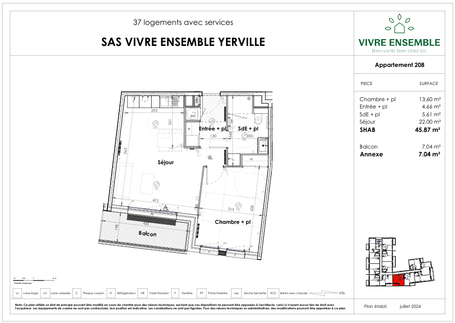 À louer dans une nouvelle résidence senior à Yerville (livraison prévue 2e trimestre 2028), appartements T2 neufs conçus spécialement pour les seniors autonomes souhaitant vivre dans un environnement calme, sécurisé et convivial.