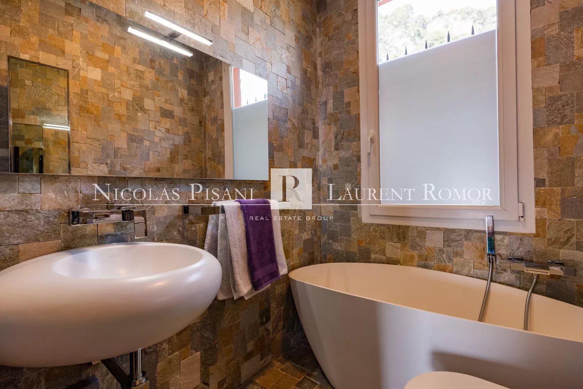 Idéalement située à quelques minutes à pied des plages et des commerces, cette villa contemporaine entièrement rénovée offre un cadre de vie rare au cœur de la Côte d’Azur. Implantée dans un environnement calme et privilégié, la propriété bénéficie d’une vue panoramique spectaculaire sur la rade de Villefranche-sur-Mer, véritable tableau vivant entre mer et reliefs. Les volumes ont été pensés pour offrir une parfaite harmonie entre élégance et confort, avec un vaste séjour baigné de lumière s’ouvrant sur une cuisine contemporaine aux prestations haut de gamme. L’espace nuit accueille 2 chambres ainsi que 2 salles d’eau, aux finitions soignées. Une salle des sport confortable à l'étage inférieur complète ce bien. À l’extérieur, 3 superbes terrasses prolongent les espaces de vie et invitent à la détente face à la mer, dont une équipée d’un jacuzzi, offrant une expérience unique dans un cadre exclusif. La propriété dispose également d’une cave, d’un garage fermé et de 5 stationnements, un atout particulièrement recherché sur ce secteur. Une adresse confidentielle, idéale pour une résidence principale, une maison de vacances ou un investissement patrimonial, alliant emplacement d’exception et art de vivre méditerranéen. Honoraires à la charge du vendeur