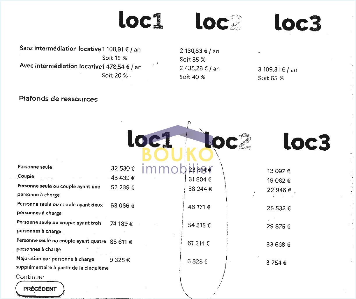 Loyer conventionné, plafonds de revenus à ne pas dépasser (plafonds Loc2).