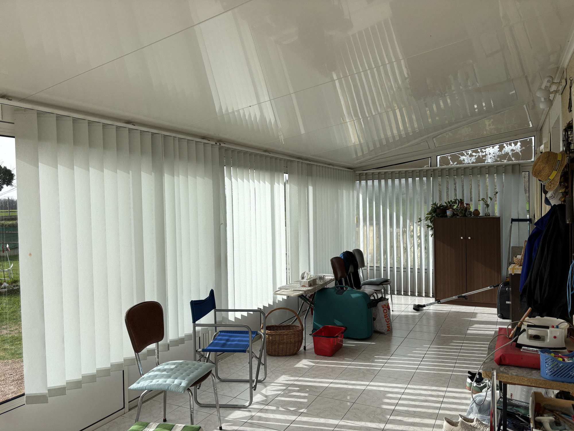 On accède à la maison par une véranda fermée dotée de fenêtres tout autour, ce qui assure une belle luminosité et offre un espace de vie supplémentaire très agréable. De là, deux portes donnent accès à la maison.