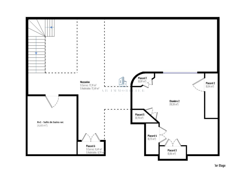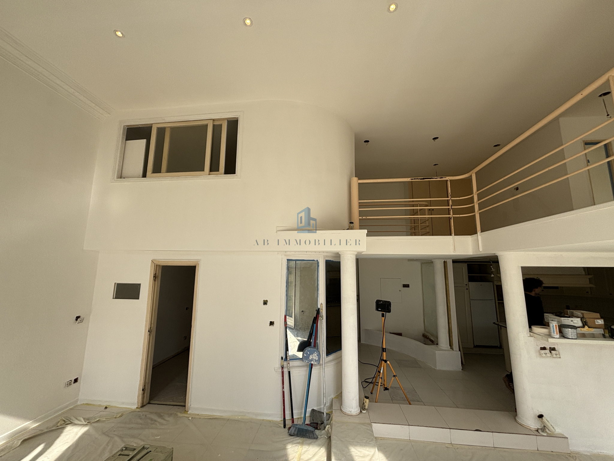 D'une surface habitable généreuse, l'appartement se déploie sur deux niveaux et offre de très beaux volumes baignés de lumière grâce à son exposition sud et ses larges ouvertures.